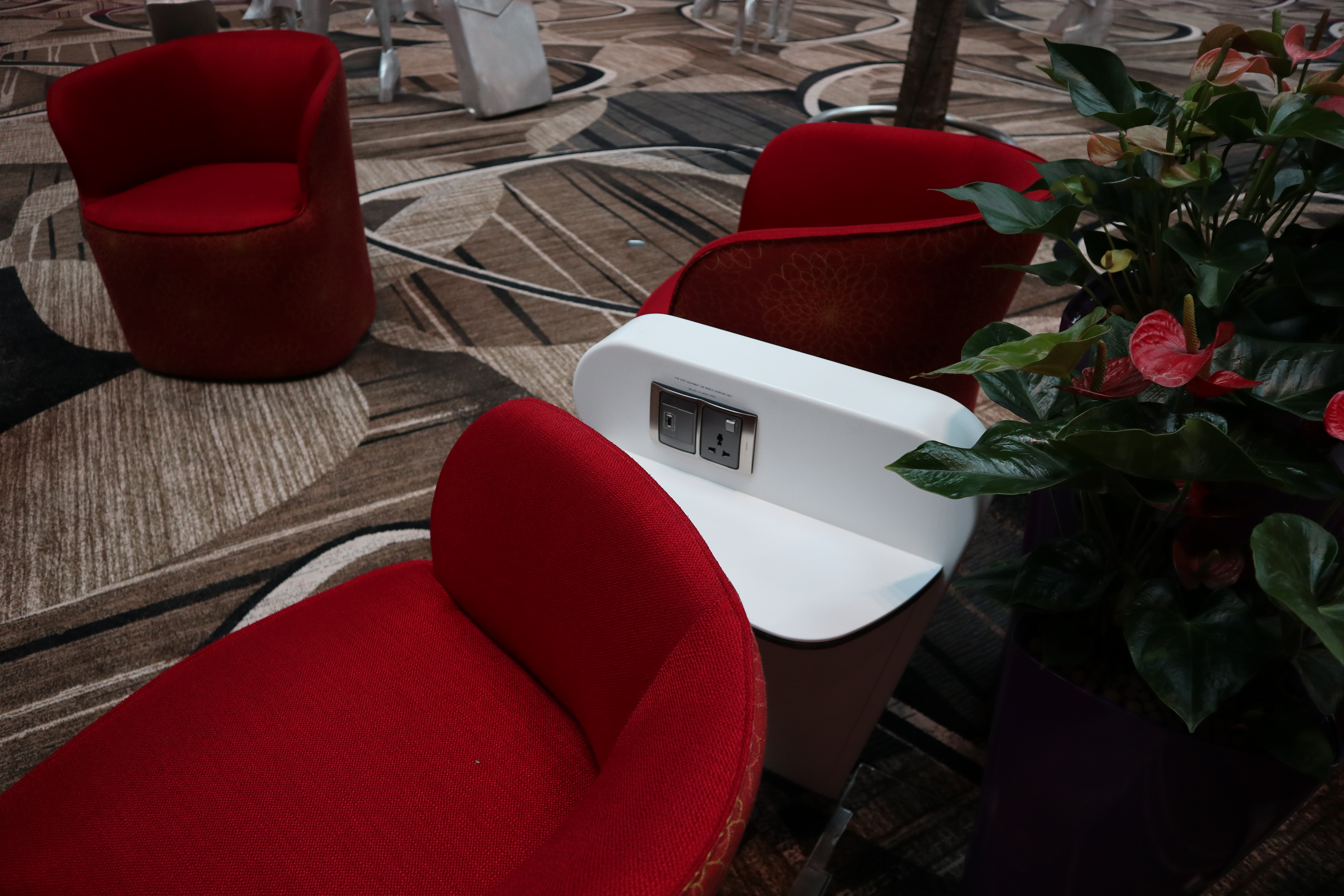 All the seating areas (and there are many) have been well equipped with international power sockets and USB plugs – very traveller centric – a really nice touch! There are also a couple of TV viewing areas. Speakers have been carefully crafted with KEF technology to allow viewers to hear clearly without disrupting surrounding passengers. Several workstation areas with free internet access are also available.