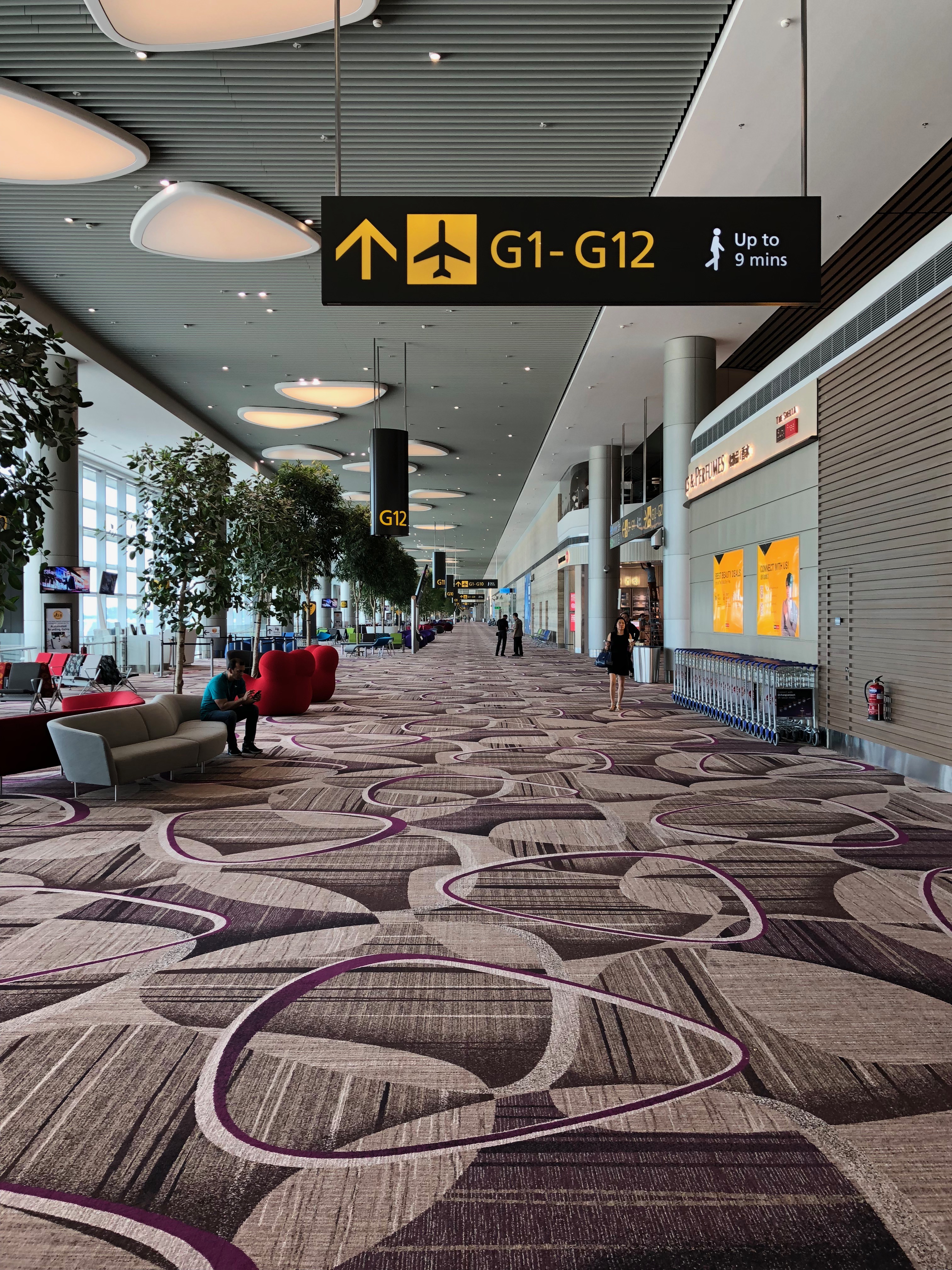 Terminal 4 is a long ‘L-shaped‘ terminal. The main shopping area is roughly in the middle of the terminal, meaning that G1 and G18-21 are a long walk. In most of Changi’s other terminals, there are continuous travelators that reduce the walking time between gates. Oddly they have decided to only put two or three in the whole of T4. Our recommendation, give yourself 10 minutes at least to get to the gate!