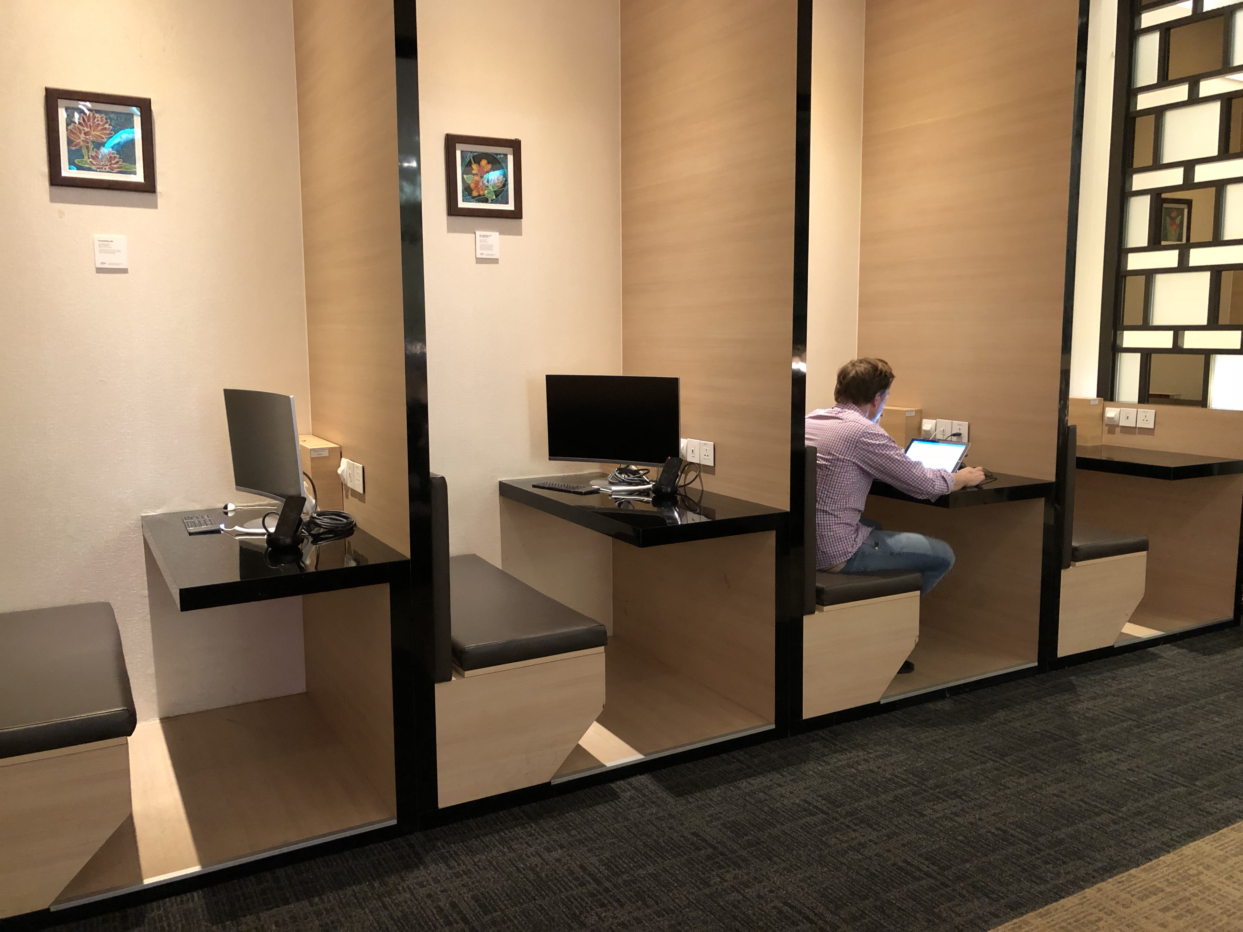 A pretty good offering from SATS. Of the three lounges in Terminal 3, we rate it joint best with the DNATA lounge. There is plenty of seating, good office space and a wide selection of food and drinks.