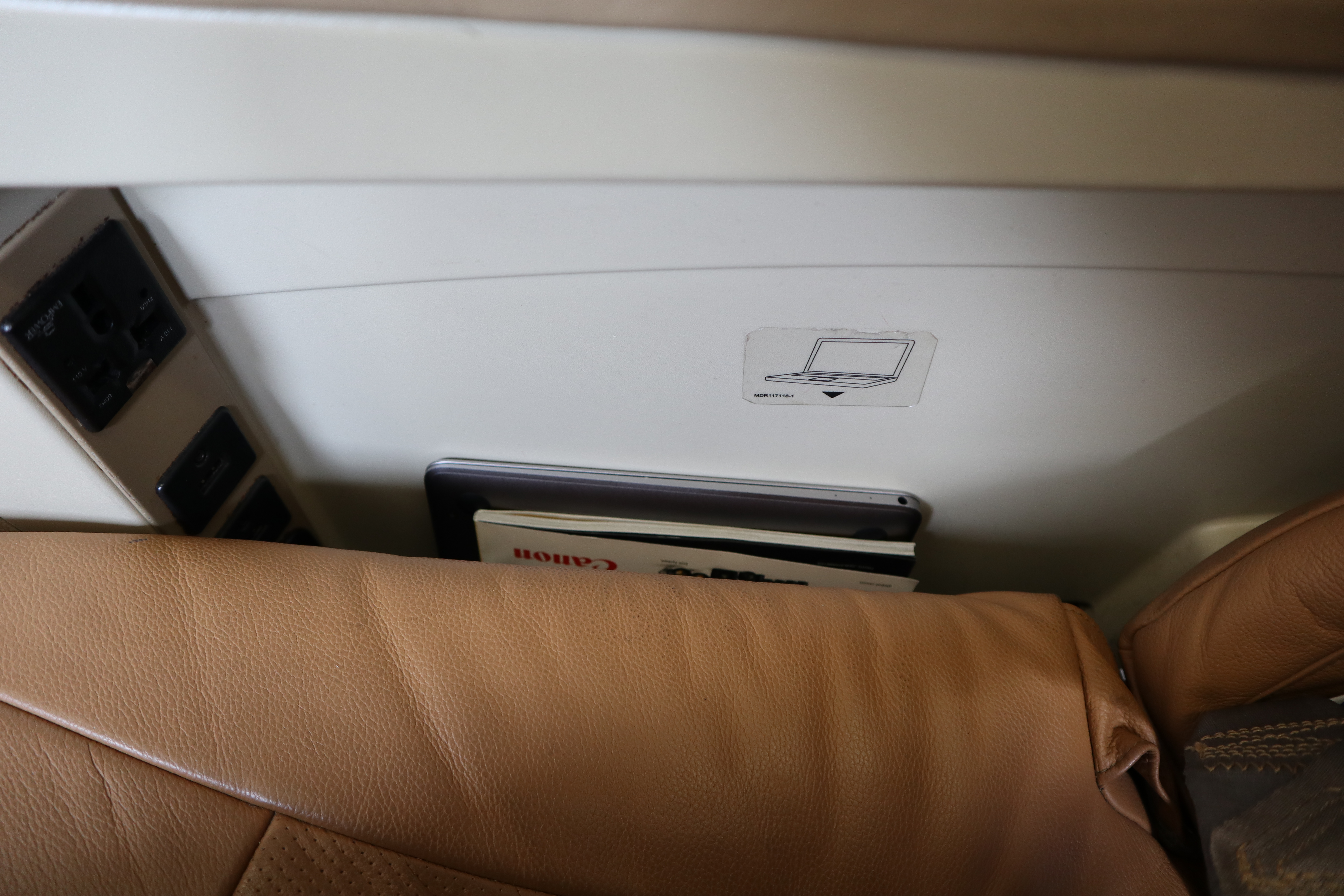 The seat itself is reasonably comfortable, upholstered in plush brown leather and despite looking quite dated, still holds it’s own against rival business class products.