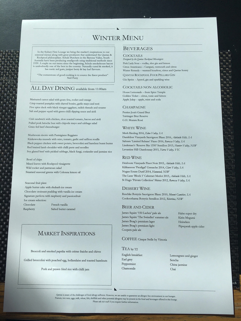 For those interested in the ‘All Day Dining’ menu – which actually means Lunch and Dinner and is served after 11am – here’s a copy from High Tech Flight’s review from July 2017: