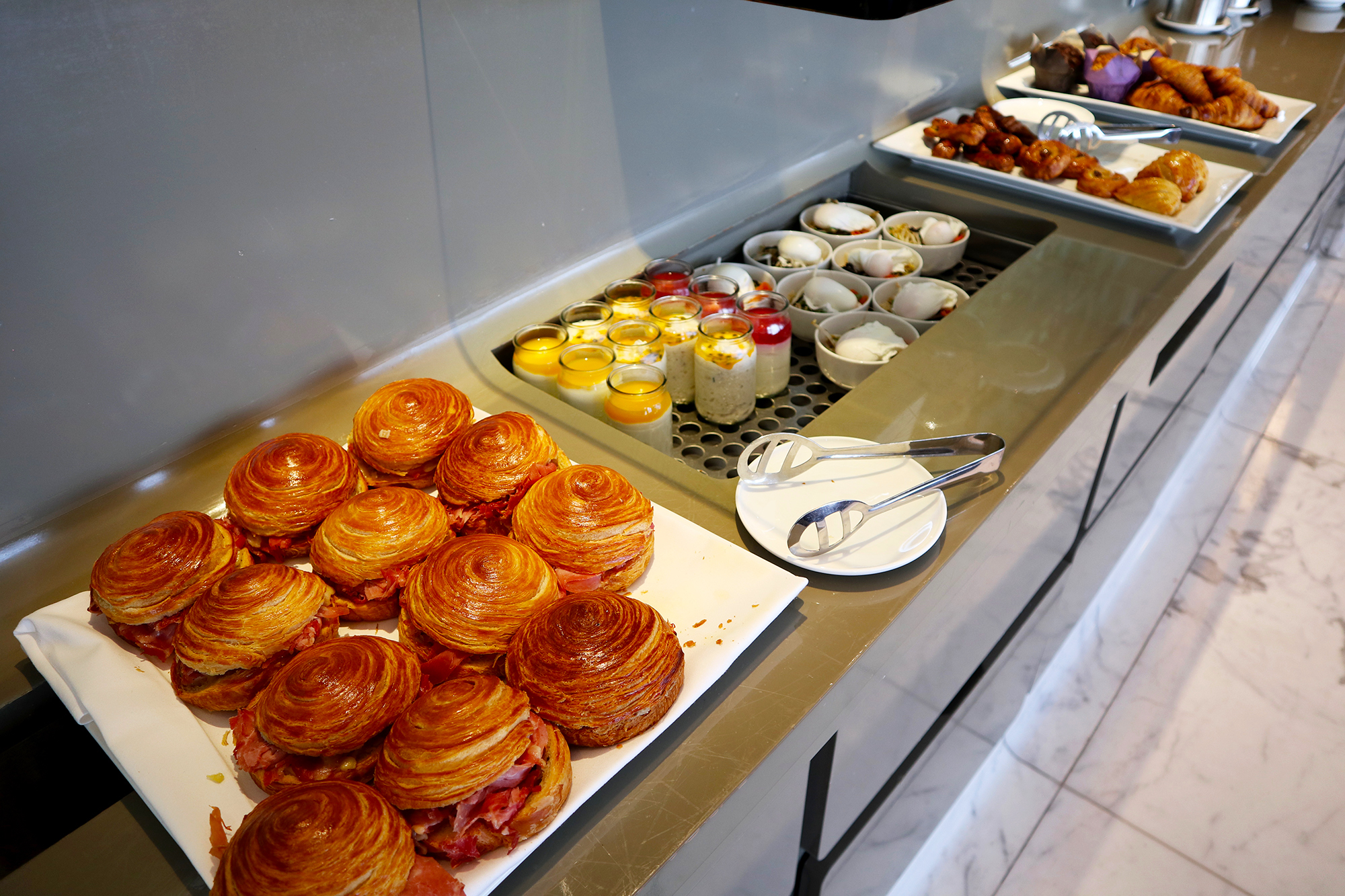 For those on the go with a bit less time for full-service dining, there are a number of self-service breakfast bars throughout the lounge stocked with a variety of lighter options alongside tea and coffee machines.