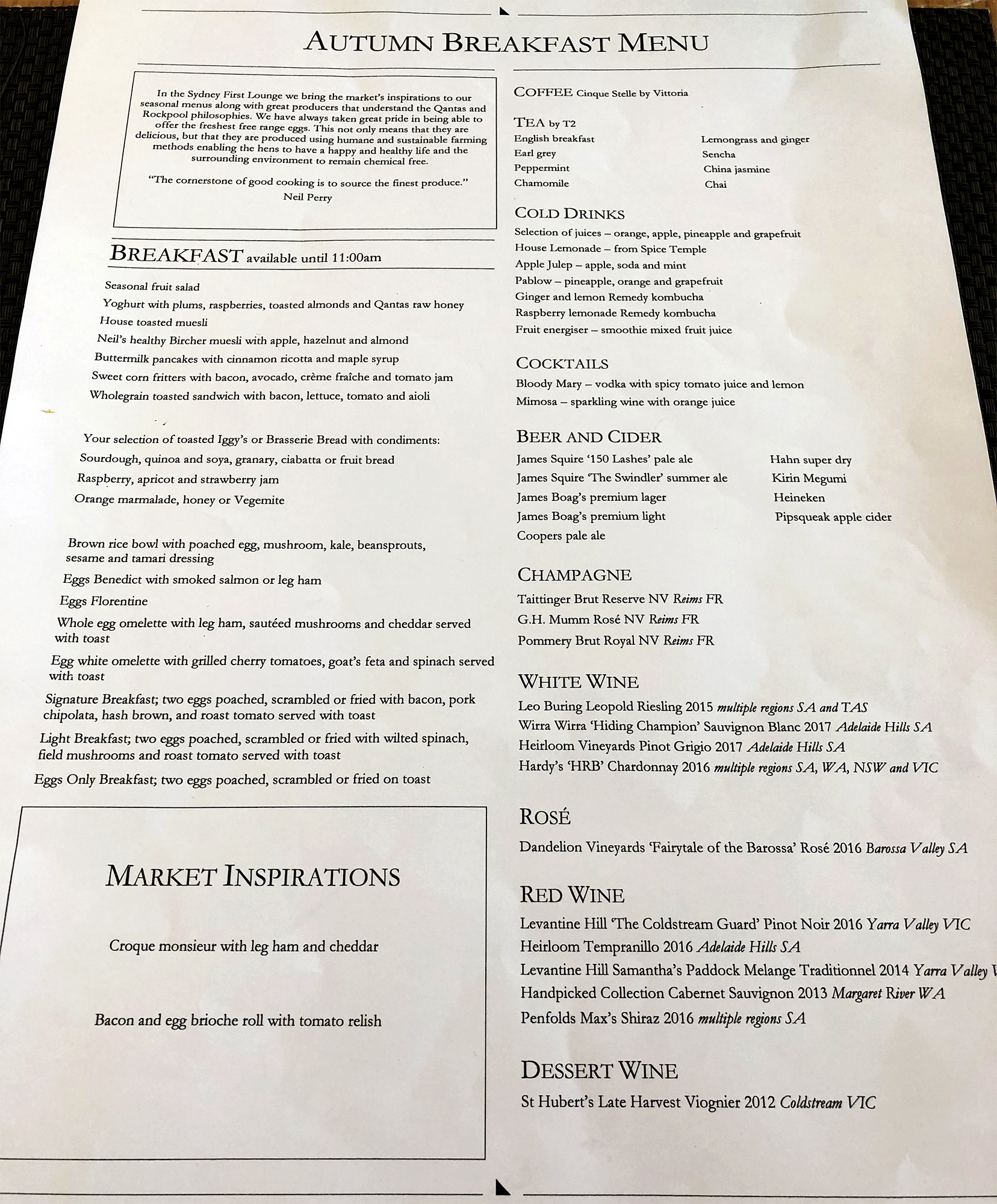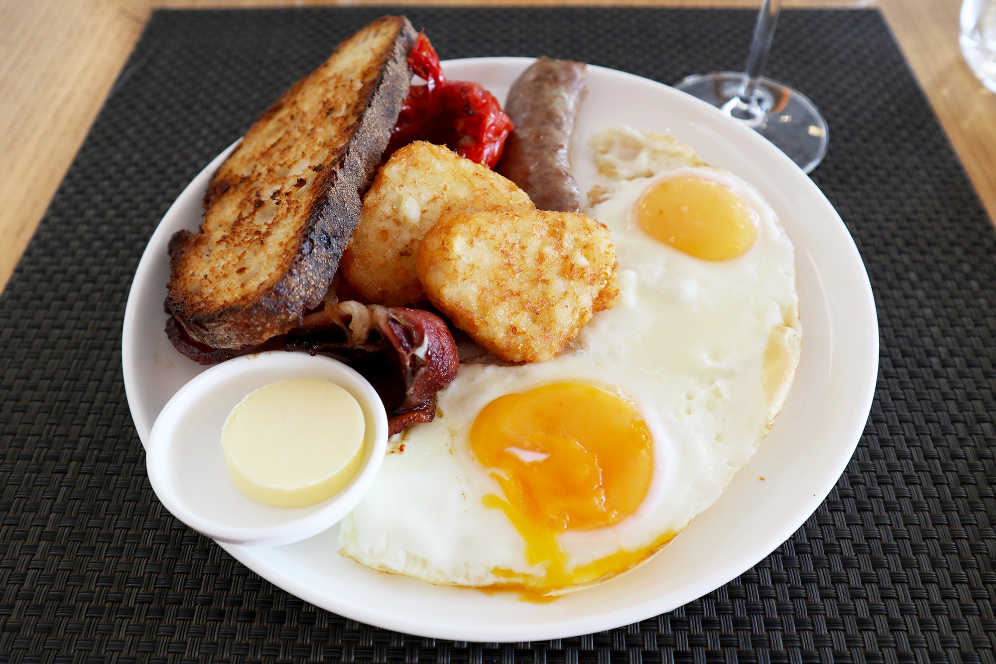 The extensive à la carte breakfast menu featured a variety of lighter and heavier food options, plus an extensive drinks list including a couple of morning cocktails and three Champagnes.