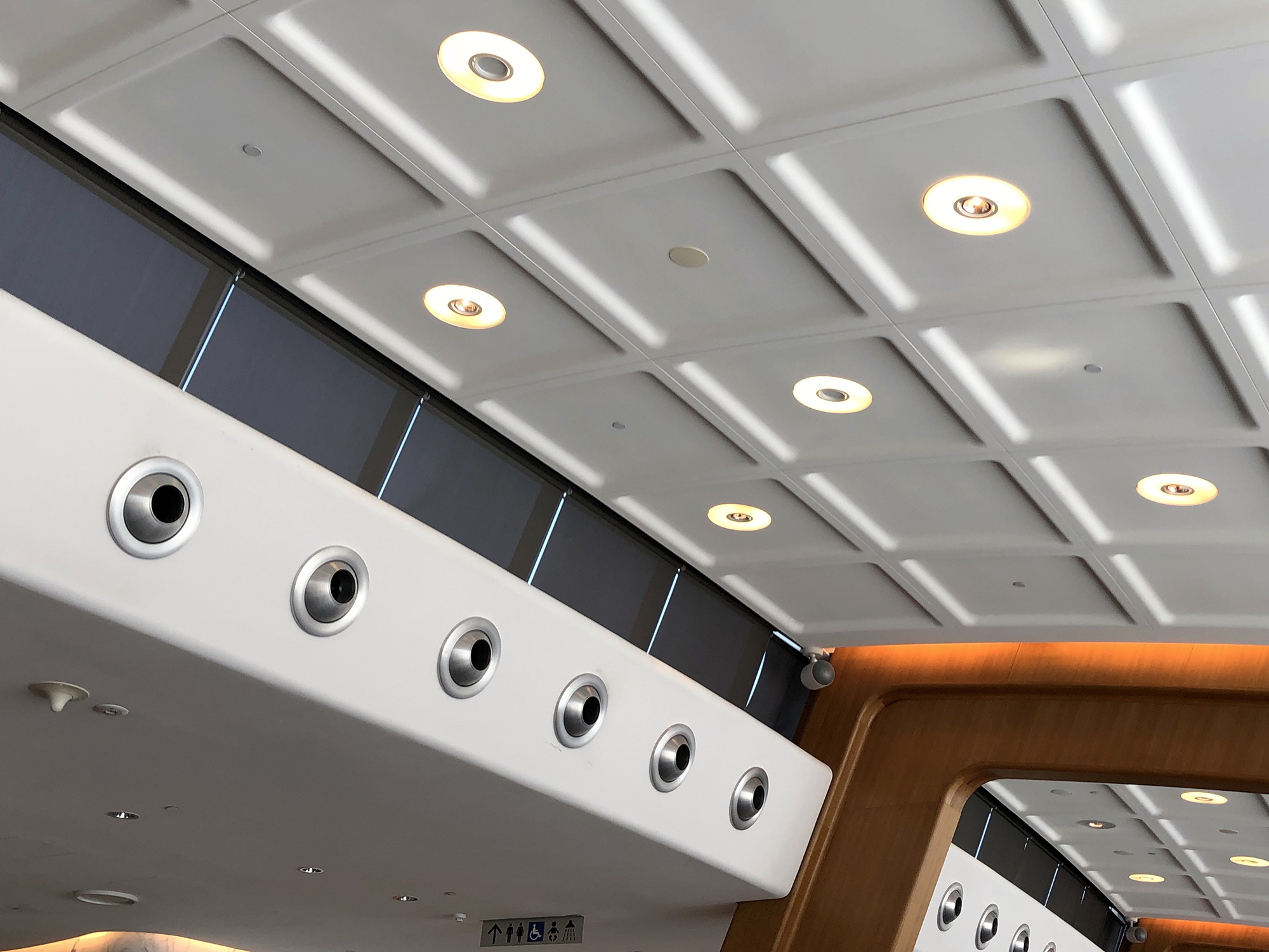 One of the standout features of this lounge are the split-flap departures display boards, the largest of which is in the main entrance atrium with smaller installations in other parts of the lounge. Marc Newson included these “to remind visitors of bygone days of travel”, and they are certainly a great focal point.