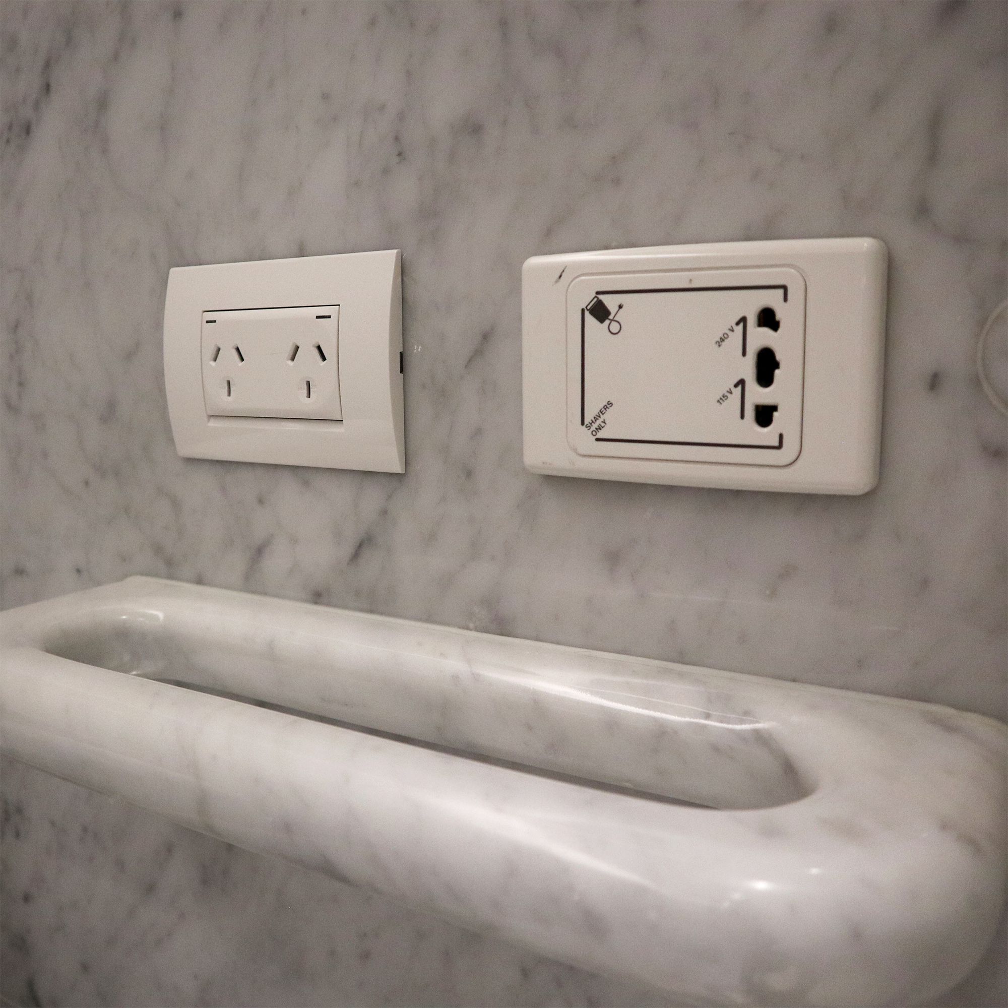 Unless your charging devices use the Australian 3-pin plug type, you’ll need to pack your adapter in your hand luggage if you want to use the sockets in this lounge, as they are all the Aussie 3-pin type.