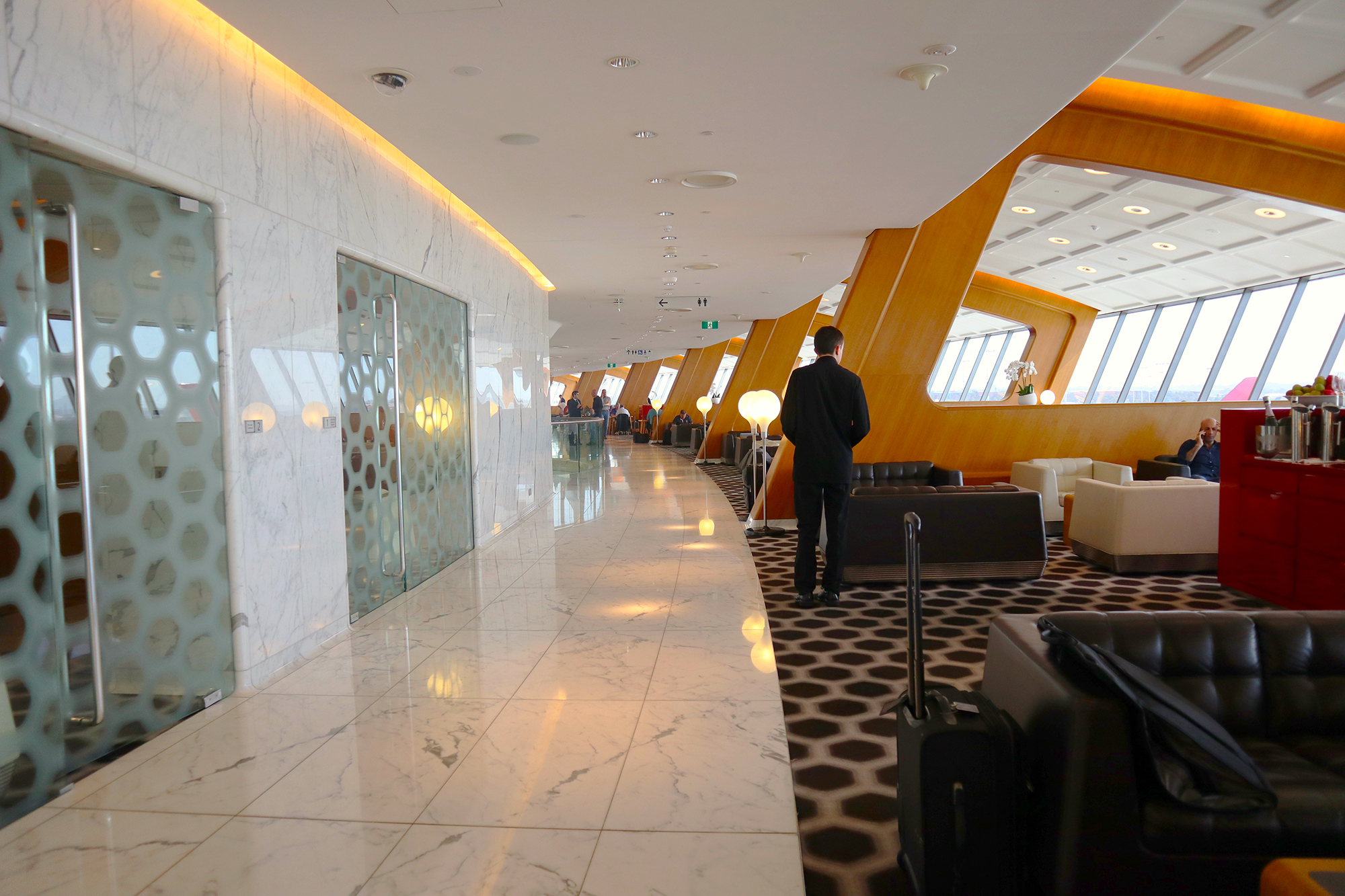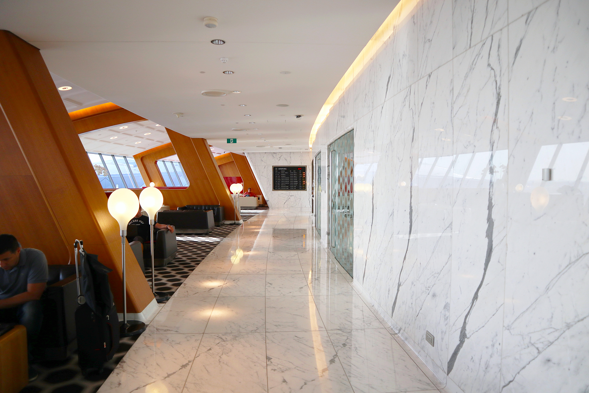 You’re well catered for in the Qantas first lounge if you need a shower before your flight, eight spacious marble-clad shower rooms are available close to the spa end of the lounge (turn left on entry if you want to head straight to the showers).