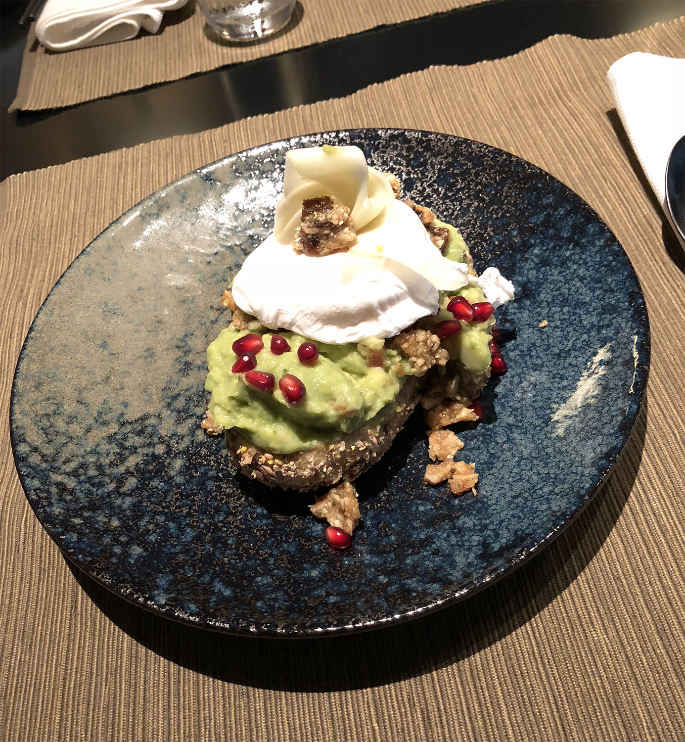 I had the avocado toast with poached eggs, my favourite. The toast was crisp, the avocado smash was zingy and the poached egg was perfectly cooked.