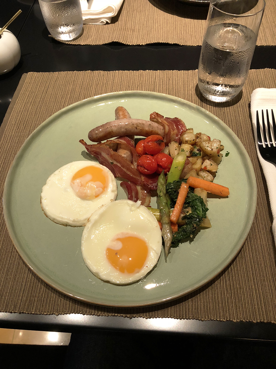 The menu is small and simple and the concept is modern Chinese. In fact, it’s identical to the room service menu – something we love for those times we just can’t summon the energy to leave the room and would rather hibernate. A full in-room selection is certainly appreciated.