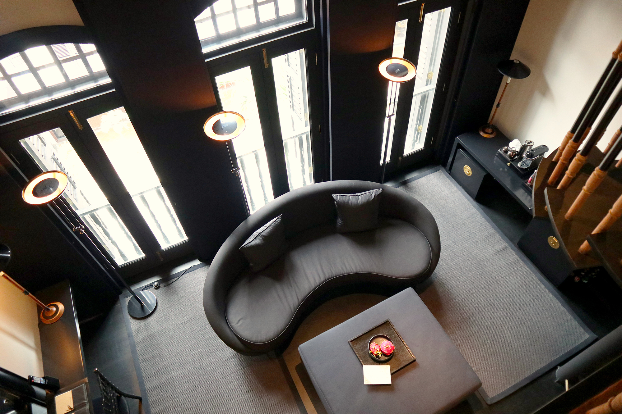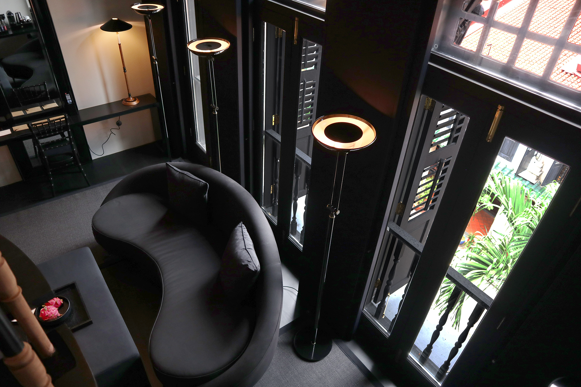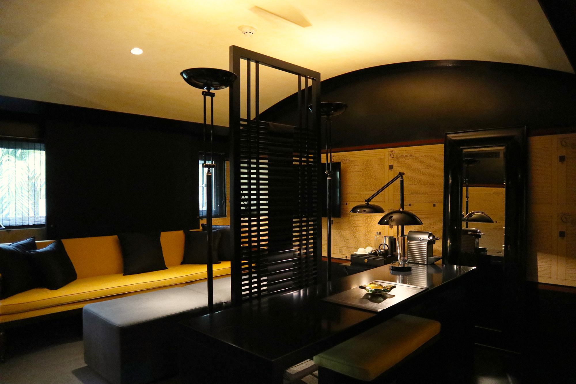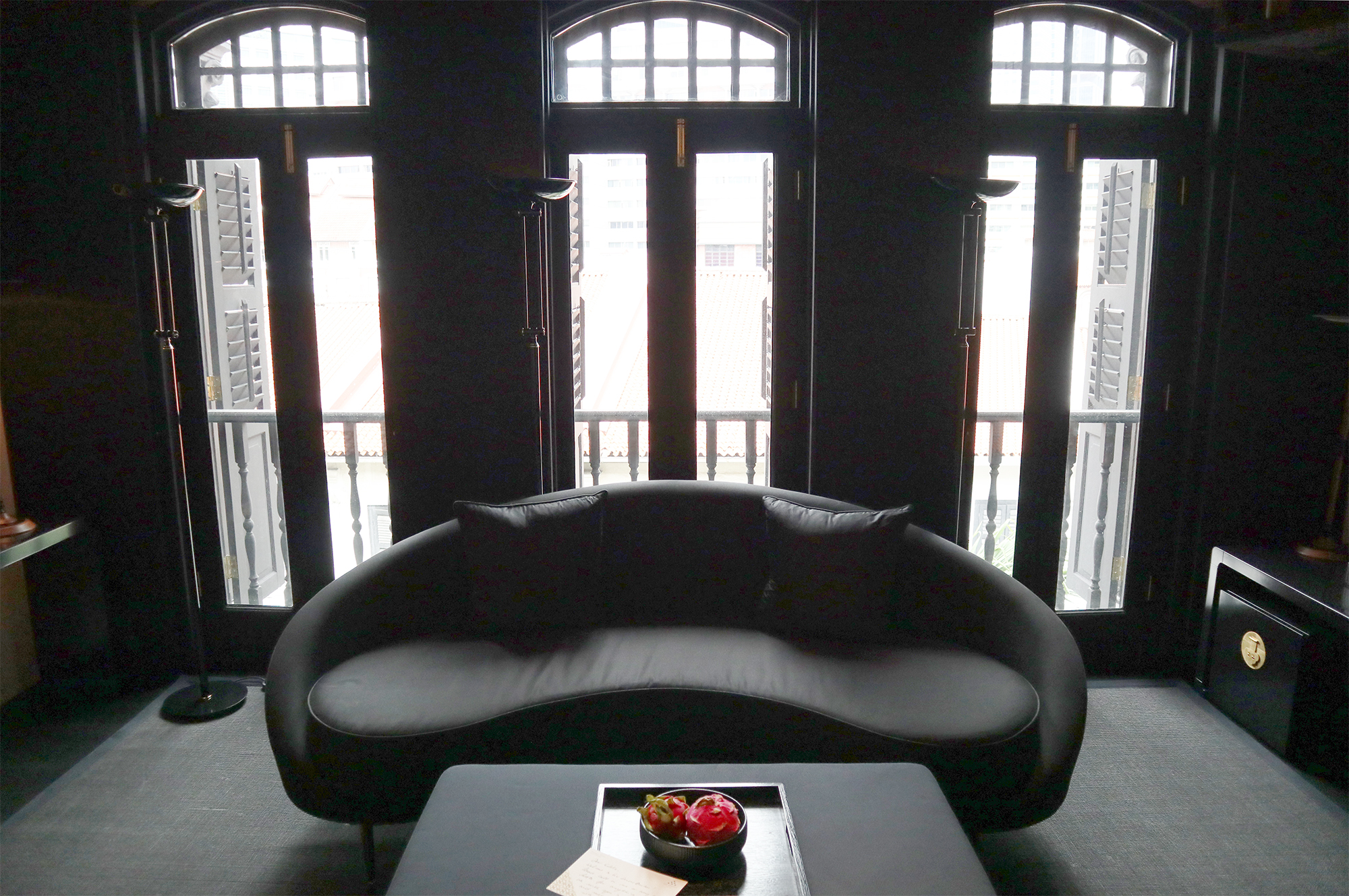 These nine suites run along the Duxton Road side of the hotel and are all located on the 3rd storey. As you enter the room you are greeted by three tall traditional style windows. The furniture is almost entirely black with hints of gold and yellow.