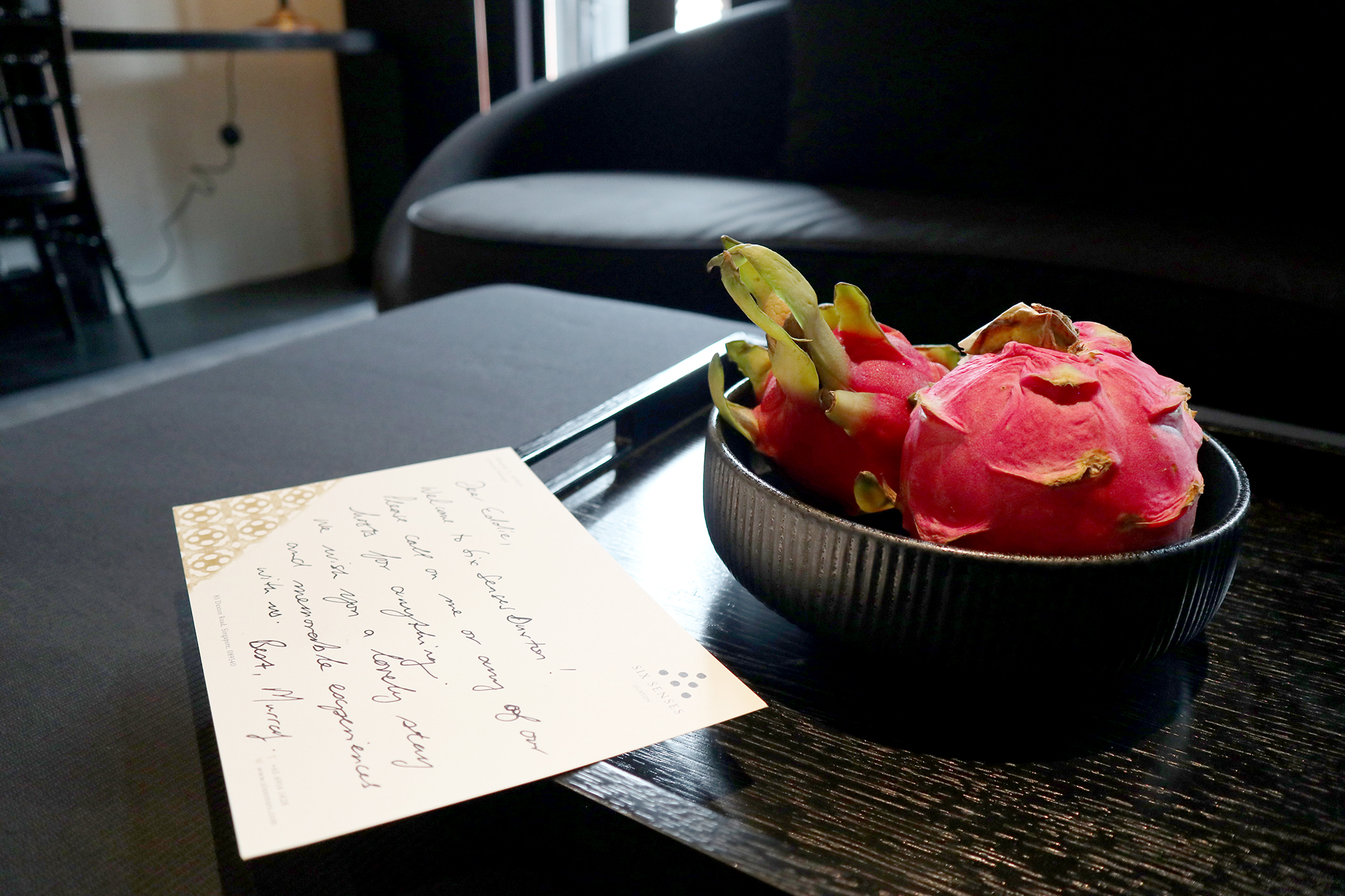 Check-in was fast and efficient with friendly service. After a refreshing welcome drink, a cold towel and brief chat with the staff about their opening week we were shown to the room by Spencer – soon to be the front office manager at the nearby Six Senses Maxwell.