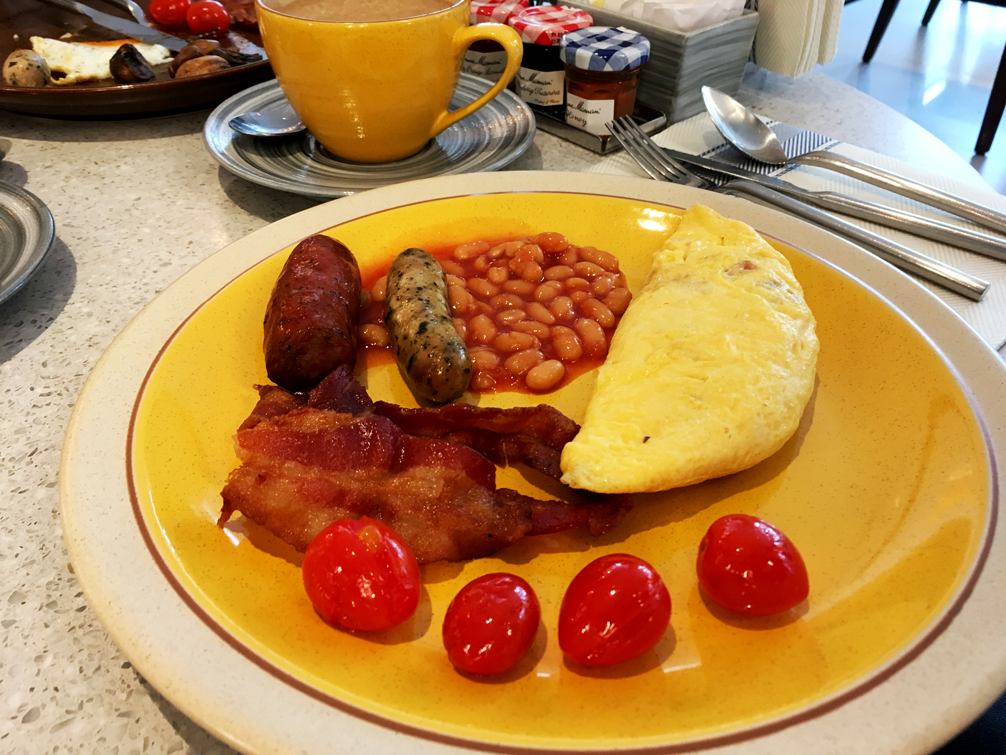 Really it’s just three restaurants alongside each other serving cold cuts, fruit and bread plus a Western counter including an egg station then further on an Asian section with a noodle bar.