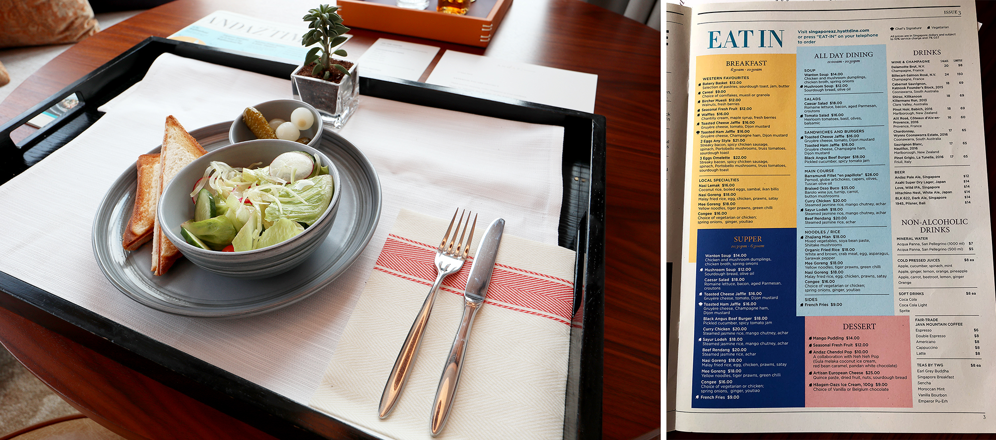 Quirky Singapore influenced options are available in a newspaper style hotel guide. You can order either via phone or via the app/website. Since our perennial favourite, the club sandwich, wasn’t offered (perhaps a little cliché for this modern brand), we opted for the Toasted Ham Jaffle.