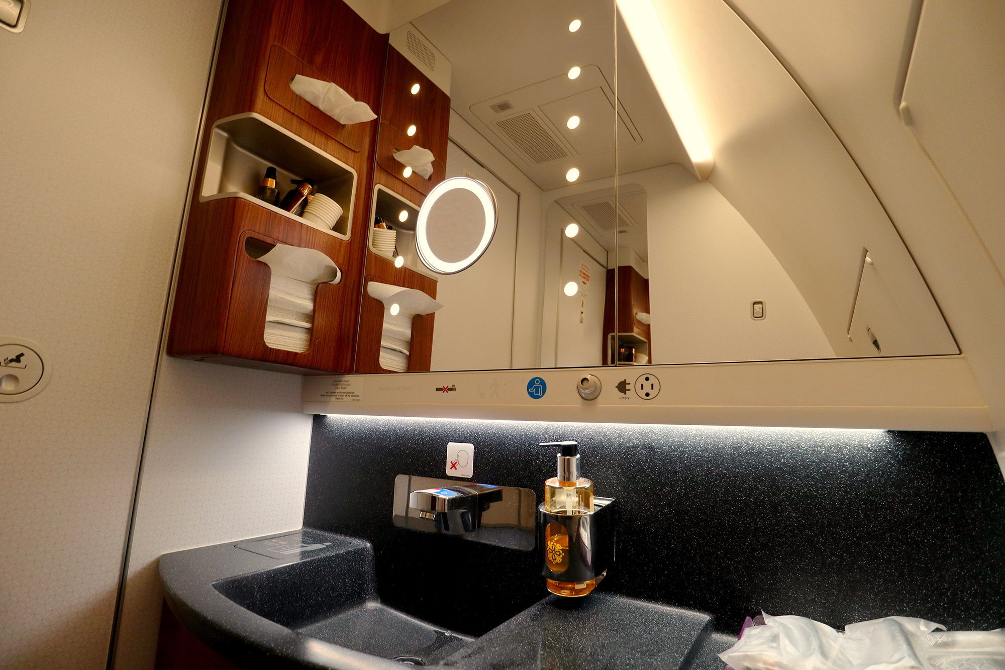 I am scheduled to fly on the A350-1000 from DOH to JFK in a few months, and I am flying with a companion. I picked 11E and 11F, because the small cabin looked really great. However, I am somewhat concerned about the bathroom situation. Even if you were in 11K so on the other side, did you find it to be an annoyance? I don’t mind the galley, it’s just that bathroom smells and the flush noise drive me crazy, and it looks maybe a little too close for comfort.