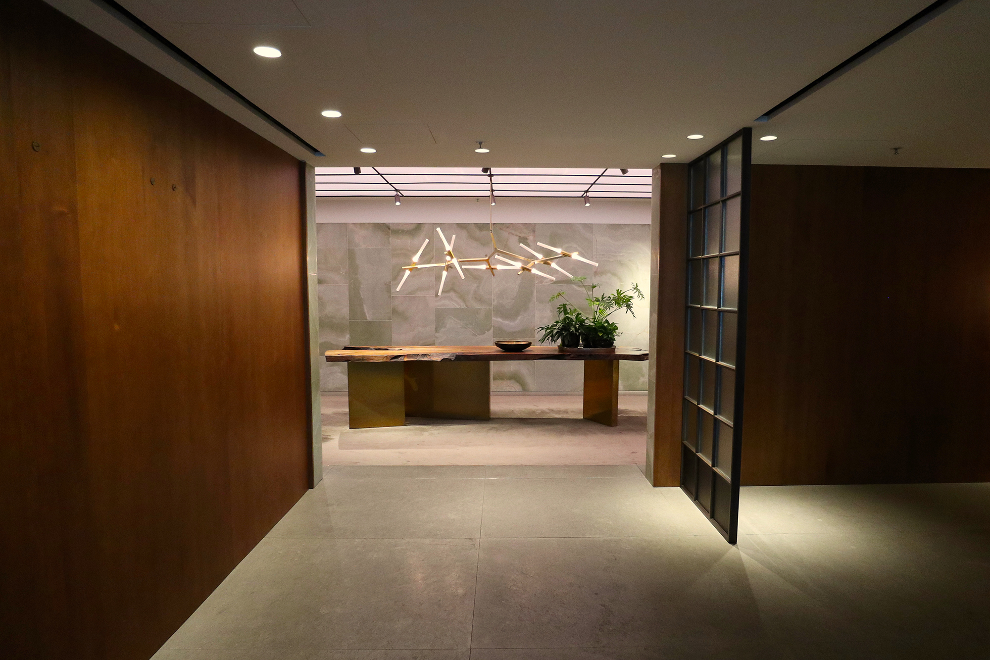 Quite opposite to The Wing First Class lounge, with its open-air feeling on the airport mezzanine level, The Pier is tucked away downstairs. The designers have therefore adopted a completely different approach, the homely ‘exclusive apartment’ feel.