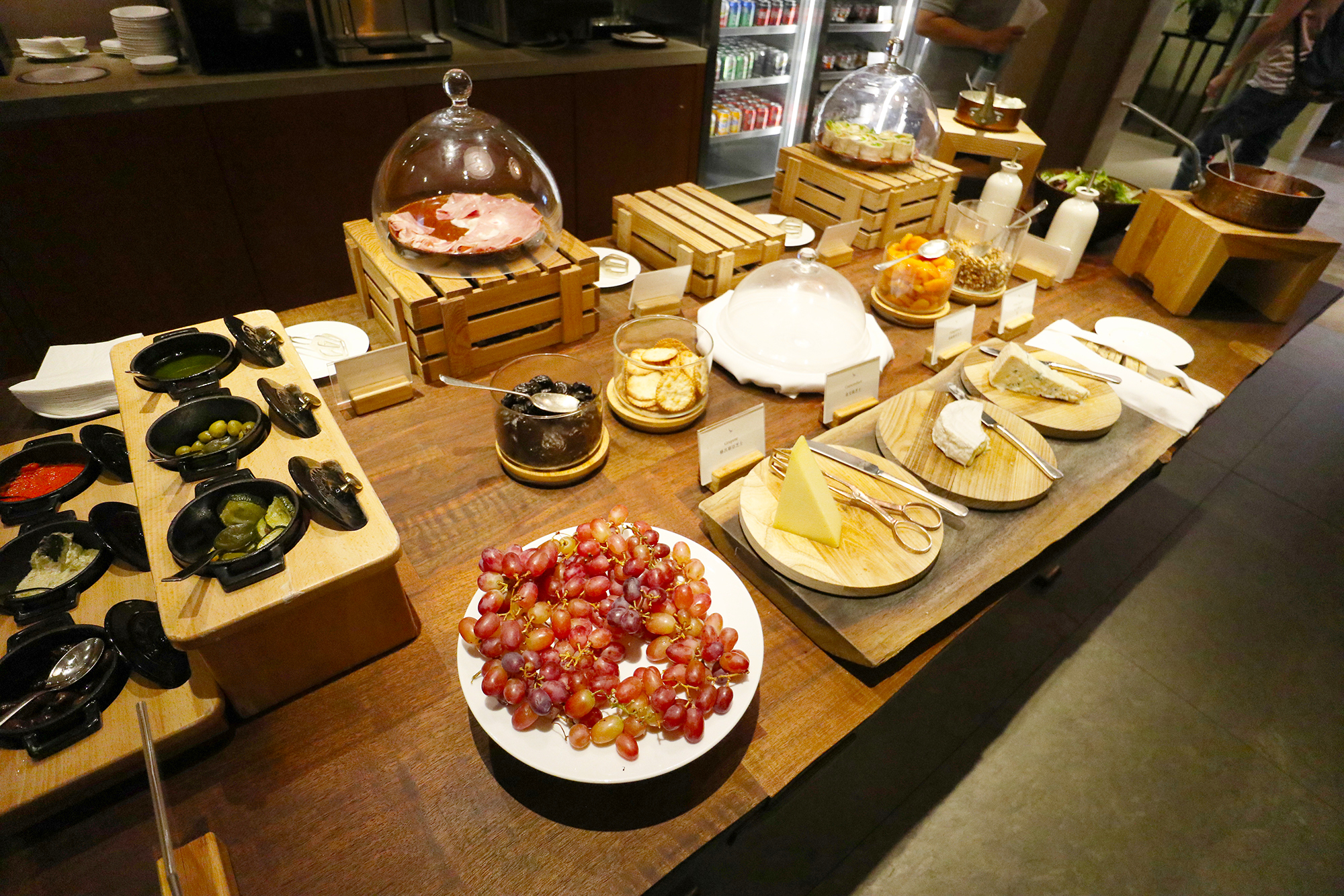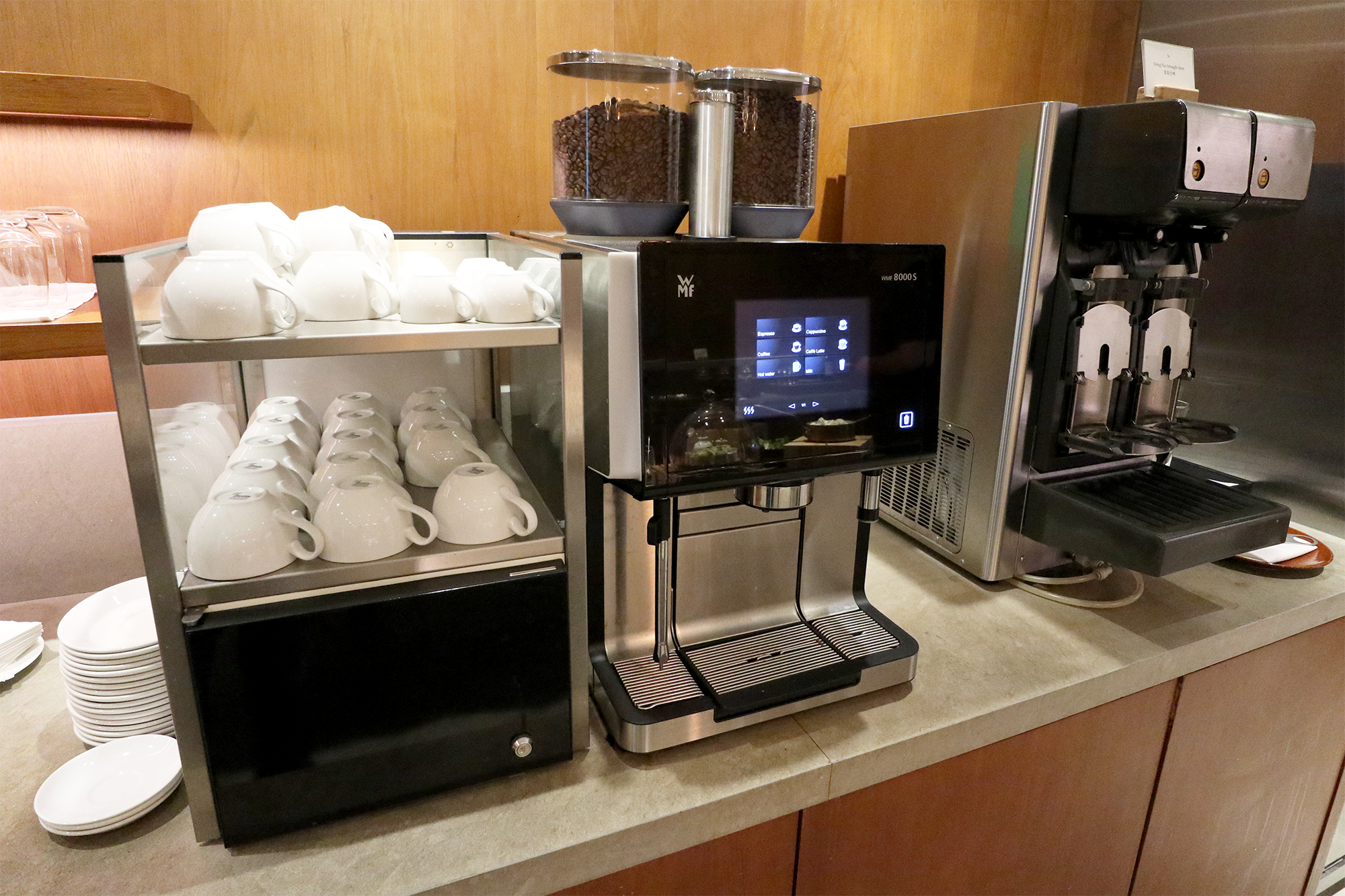 There is even an automatic draft beer machine (these will be familiar to those of you who frequent Japanese airline lounges) serving Tsing Tao, and some self-serve wine options. Of course nothing is stopping you from enjoying a wider selection of drinks from the manned bar next door.