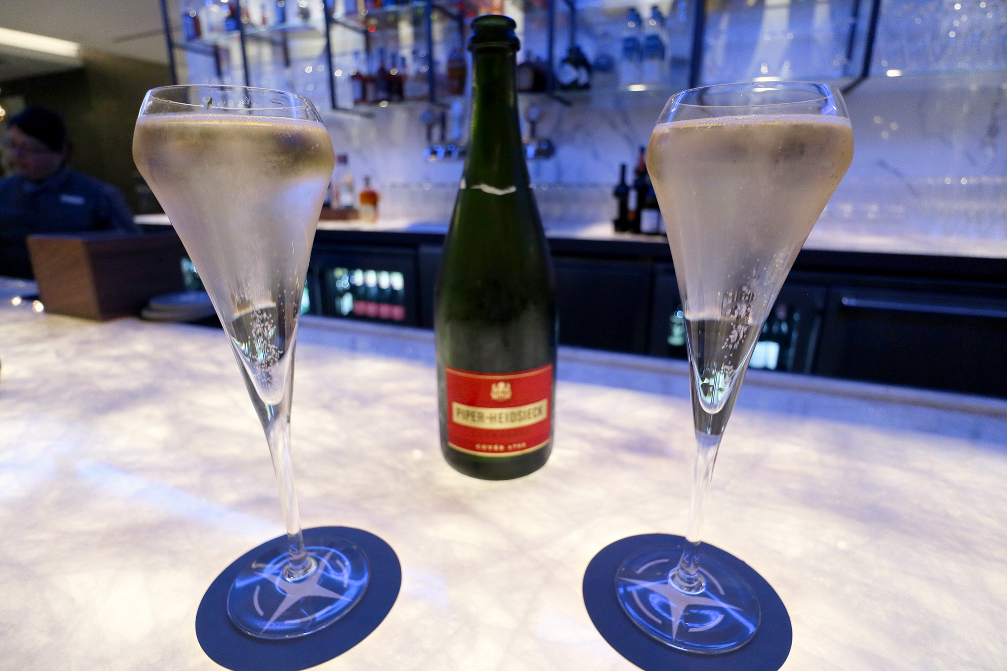 We went straight for a celebratory glass of Champagne, with United offering the Piper Heidsieck in this lounge.