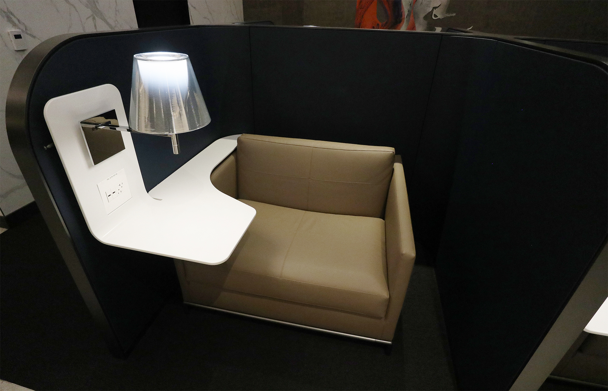 These are ideal if you need to take a nap or take some quiet rest away from the lounge. Each ‘suite’ daybed is equipped with a Saks Fifth Avenue pillow and a Saks blanket is also provided on request.