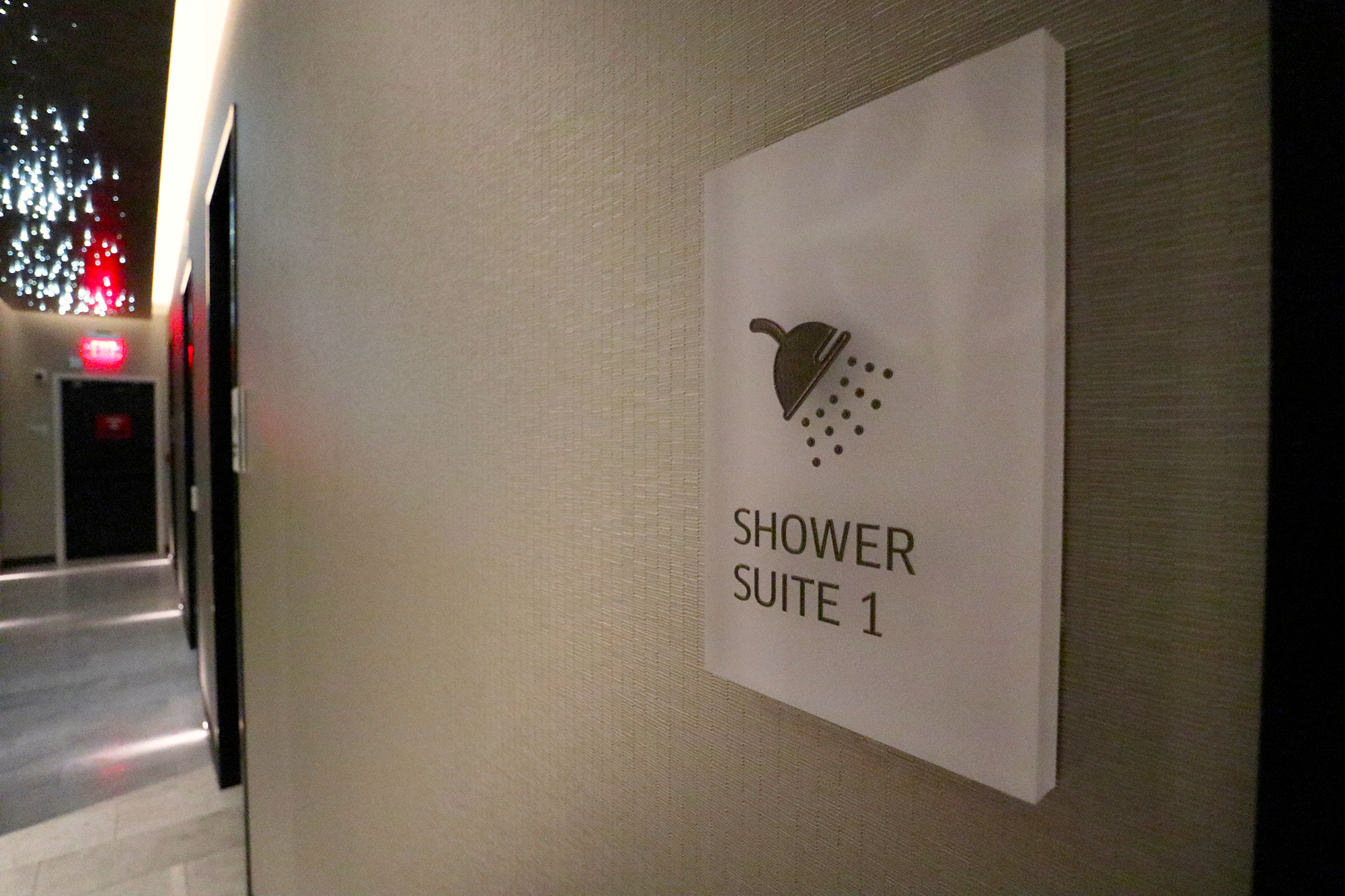 On the first floor of the lounge there are 8 shower suites available for you to freshen up prior to your flight. These are very spacious rooms with a sink and mirror, changing bench and toilet, as well as the large shower itself featuring rain head and conventional options.