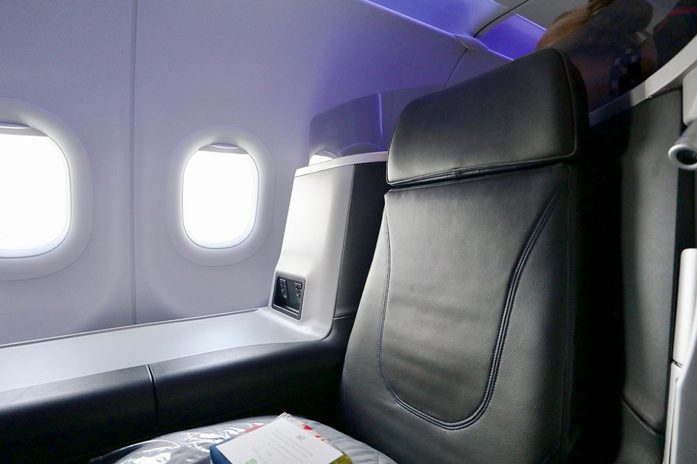We reviewed the Thompson Vantage single-aisle seat back in 2018 on a JetBlue flight, in the solo ‘throne’ seats, on the five-hour stretch from Boston to San Francisco.