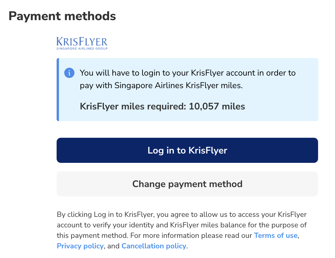 Even if you’re logged on to your Pelago account, you’ll still be asked for your KrisFlyer account login details to complete the redemption.