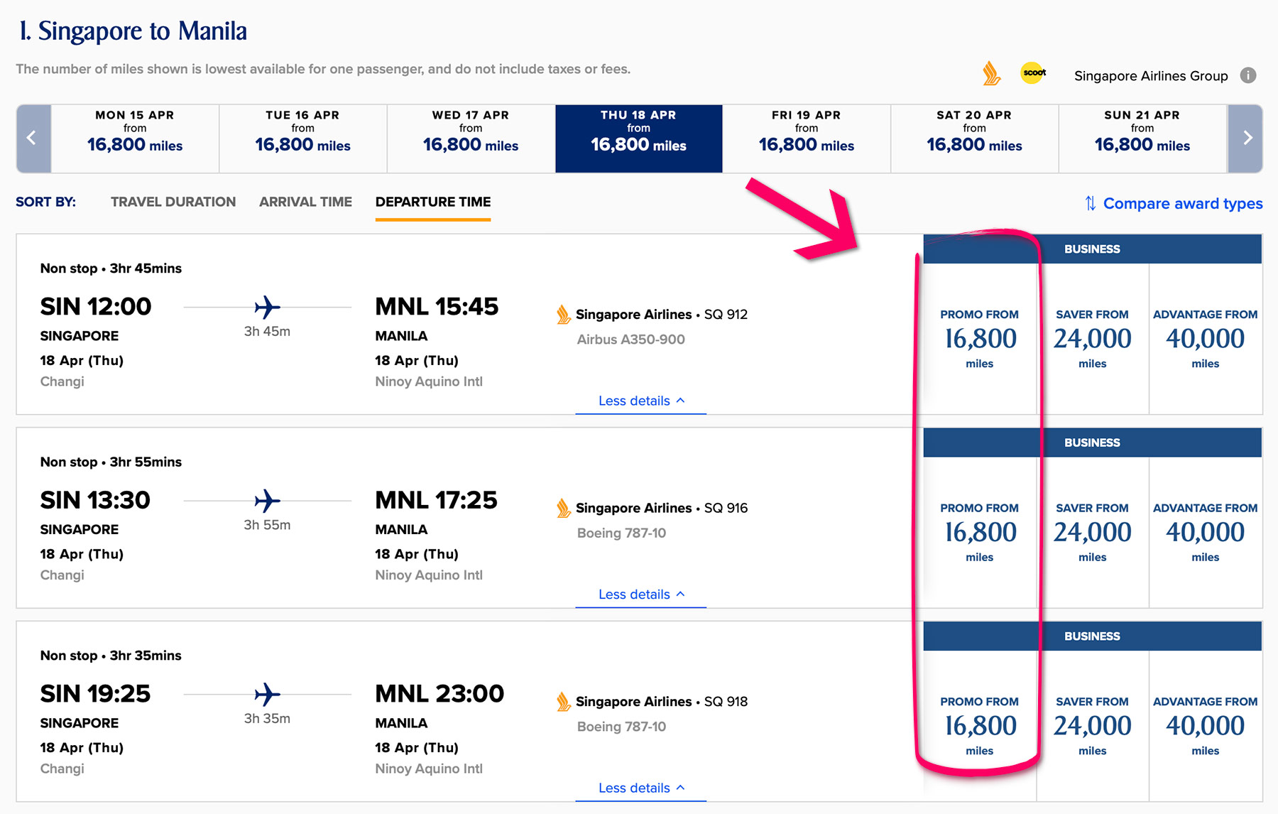 Singapore Airlines offers the Spontaneous Escapes deals under its “Promo” award category, which you’ll see alongside the usual Saver and Advantage award rates on applicable flights.