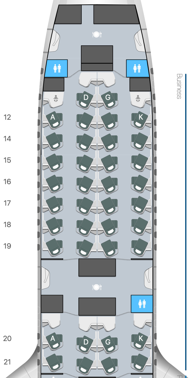 Here’s how the seat map looks on the A350-900 in Business Class.