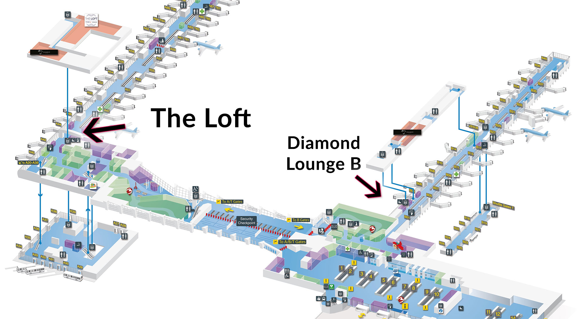 You’ll then find The Loft near Gate A42, at the base of the A pier.