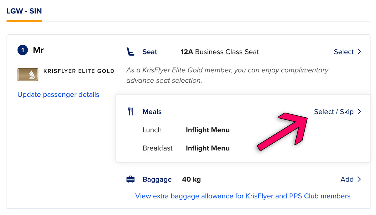 If you were perhaps put off booking or redeeming from London Gatwick, there’s confirmation this week that at least one nice perk won’t differ from a Heathrow-originating service – SIA’s Book the Cook option.