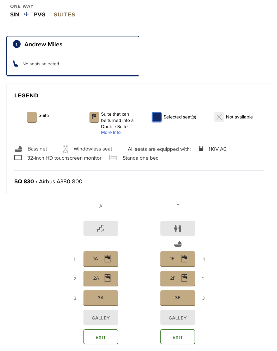 We’re found Saver Suites availability on SQ830 from Singapore to Shanghai and in the return direction too for 58,500 miles on various dates during upcoming A380 operation.