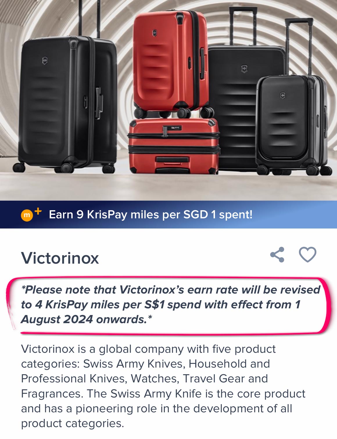 Kris+ has now revealed that another 27 merchants allowing instant miles earning for in-store purchases will have their accrual rates cut from 1st August 2024.