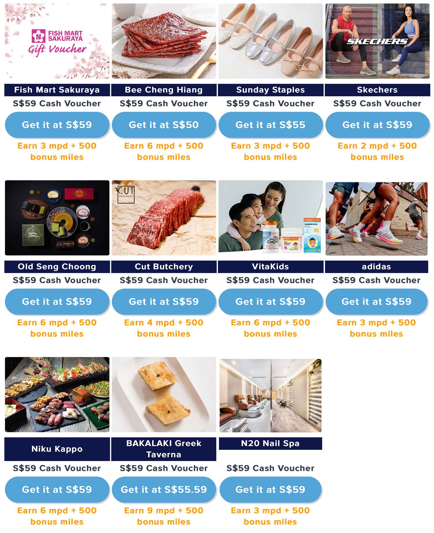 - Only one voucher per participating merchant per customer is available to purchase (i.e. maximum of 11 vouchers for 5,500 total bonus miles per Kris+ member)