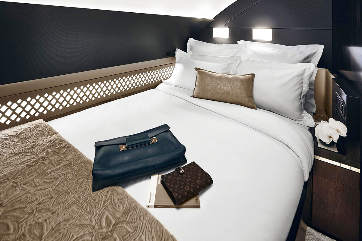 In the main First Class cabin, the Etihad A380 has nine ‘Apartments’, some of which can be combined with an adjacent suite to form a double bed.