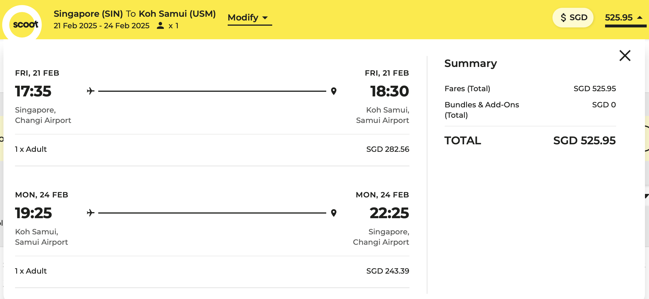 If you thought Scoot would be charging much less for cash flights over the same dates – think again.