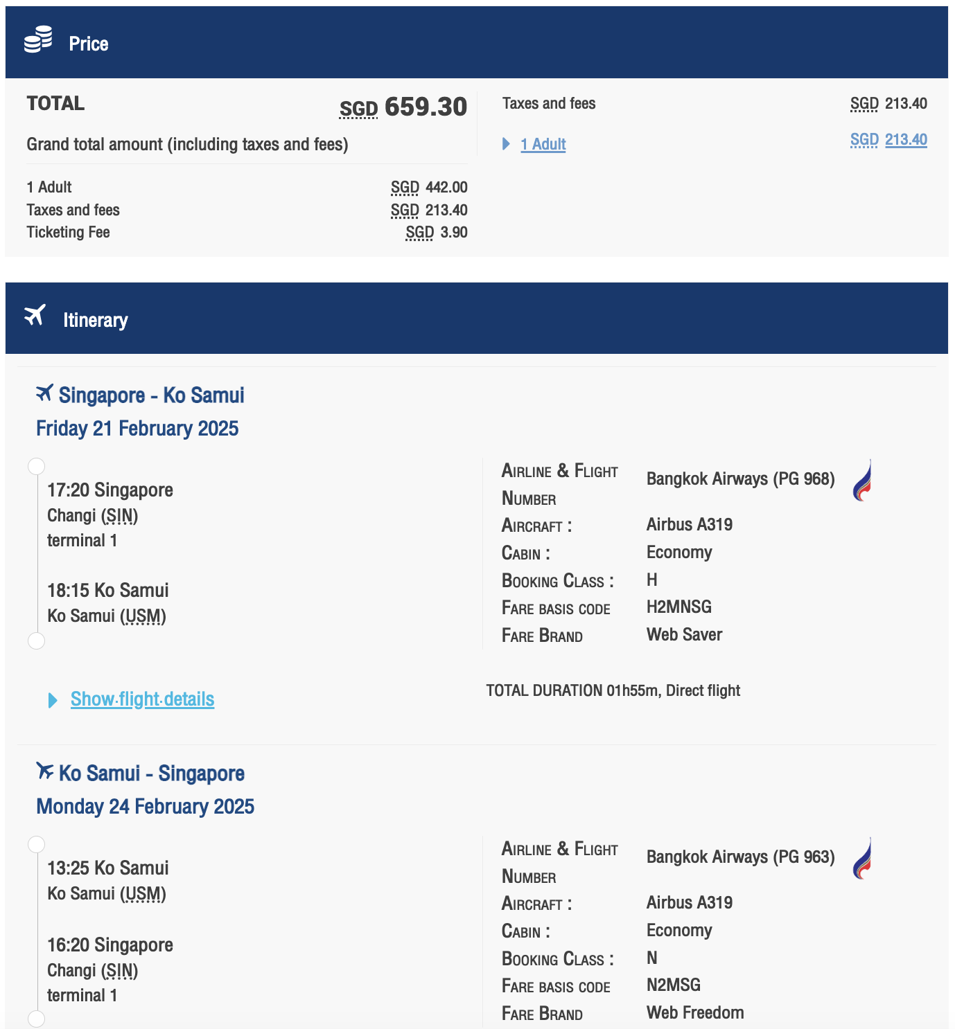 For example, Bangkok Airways is charging S$659.30 for a round-trip in Economy over this long weekend in February next year.