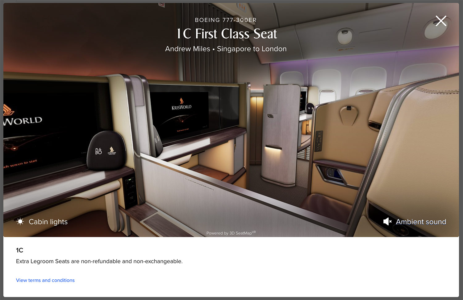 Singapore Airlines has not (yet?) added a master 3D seat map for its aircraft, allowing you to pan around and jump between the individual seats as you please in a kind of ‘walk-through’ mode.