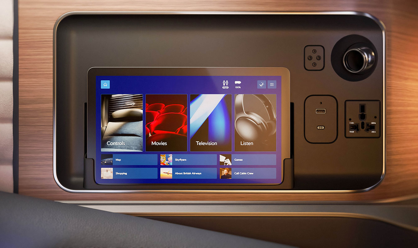 - A 32-inch 4K in-flight entertainment TV screen, with new tablet controls