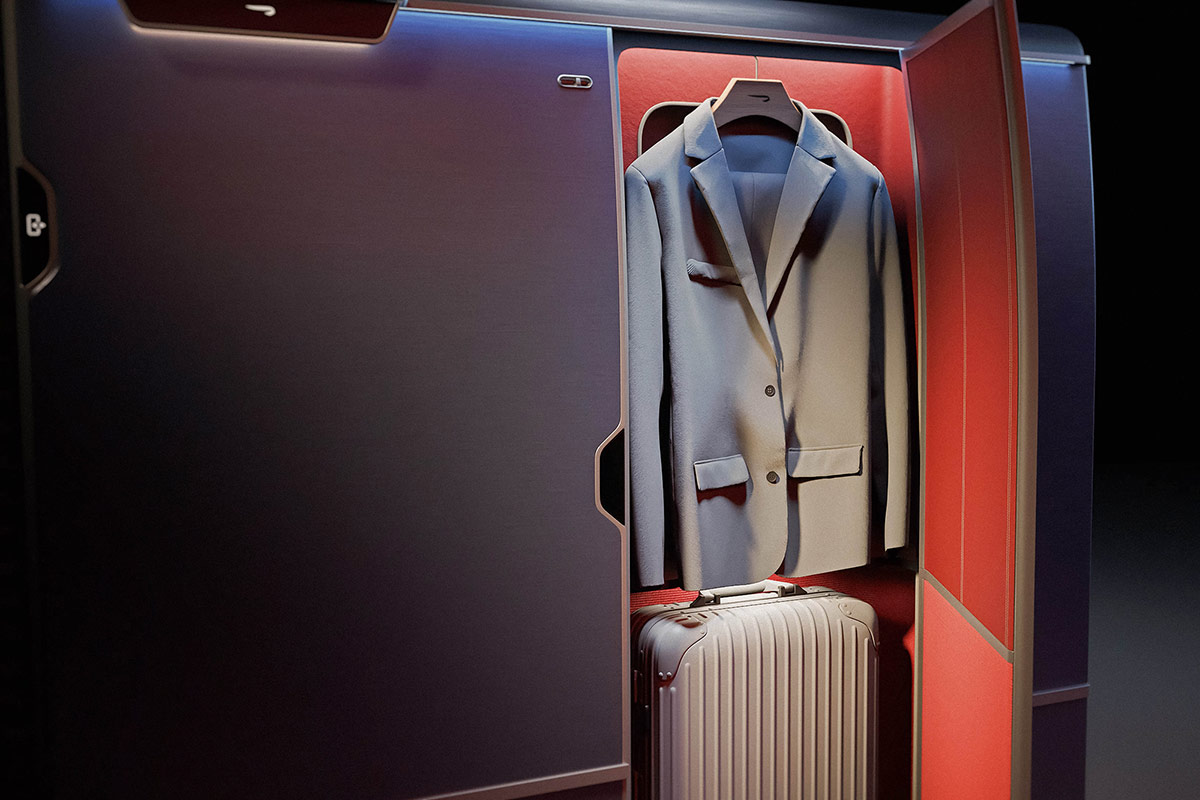 There’s also an even more accessible small storage compartment directly next to the seat, for items like your smartphone, passport and boarding pass.