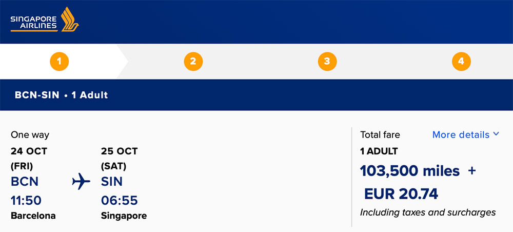 For example, redeeming Qatar Airways in Business Class from London Heathrow to Singapore via Doha in October 2025 will set you back 75,000 Avios + GBP 446.