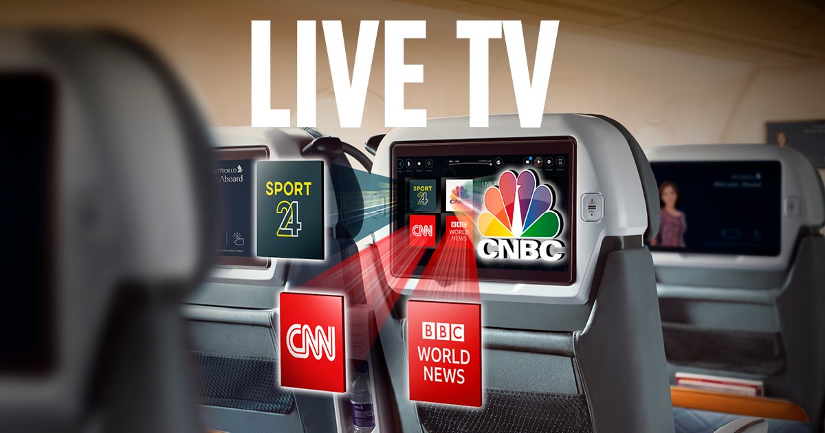 One of the major advances in connectivity technology on modern aircraft these days is the ability not only to stay in touch with the ground during your flight and surf the internet, but with higher bandwidth connections now available it’s also the option to watch live TV coverage during your journey.