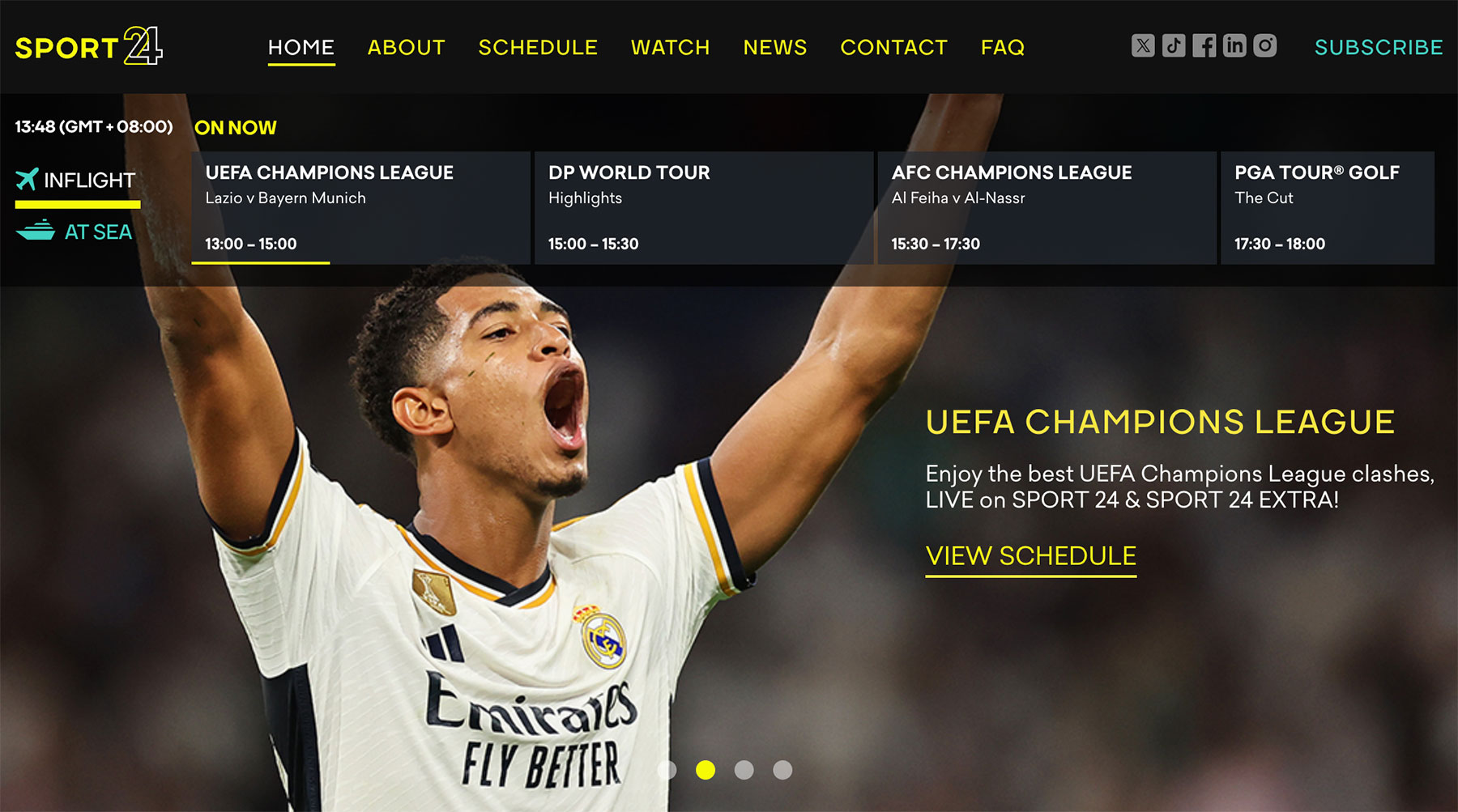 You can check the schedule for Sport 24 in advance, to check what’s on during your flight.
