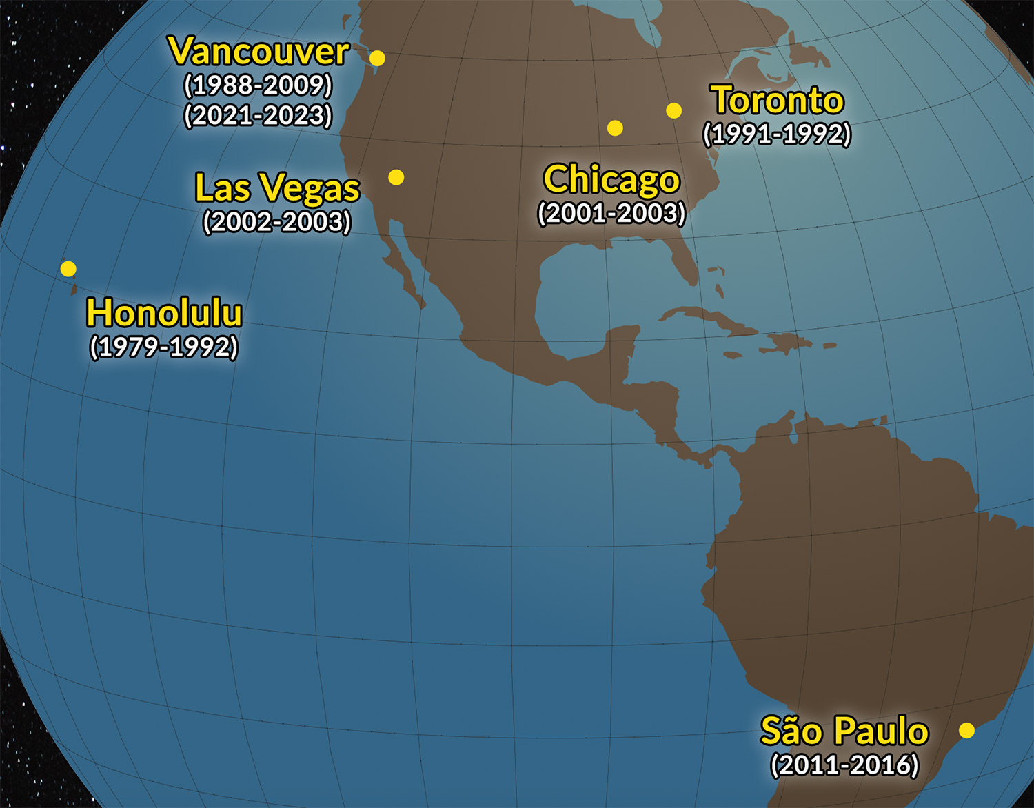 Six other cities in North America and South America have also been served by the carrier over the years, but no longer appear on the network.