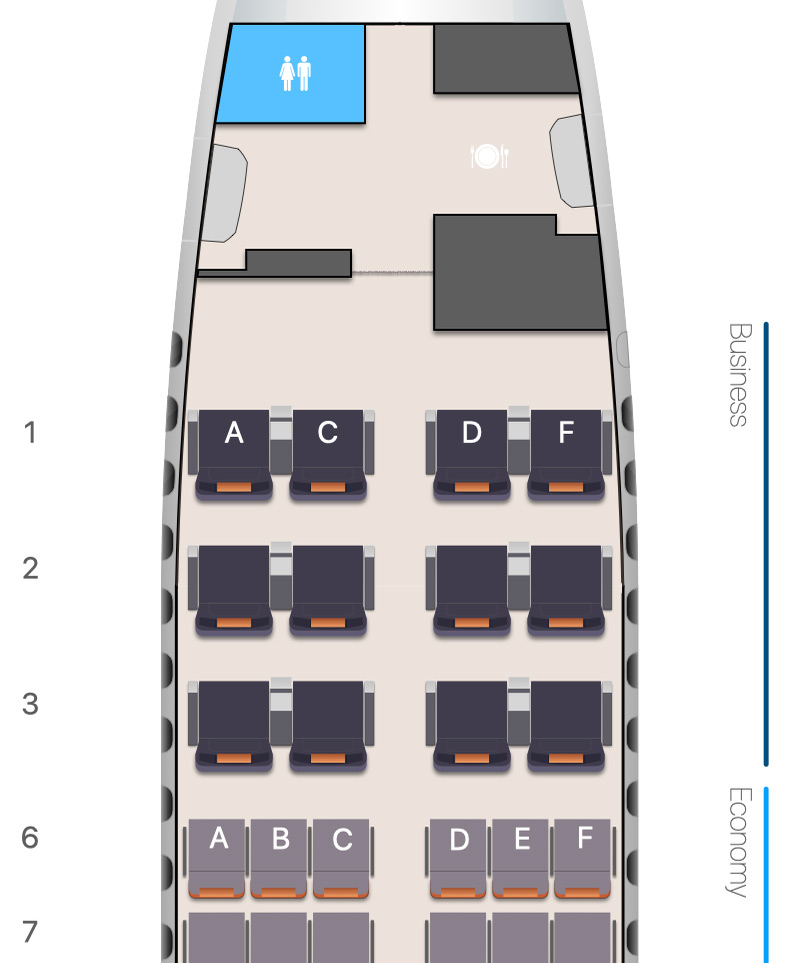 The airline is effectively a low-cost carrier, but does offer a Business Lite product in the first three rows of its aircraft in a 2-2 configuration, a more comfortable experience than the 3-3 layout in the rest of the cabin.