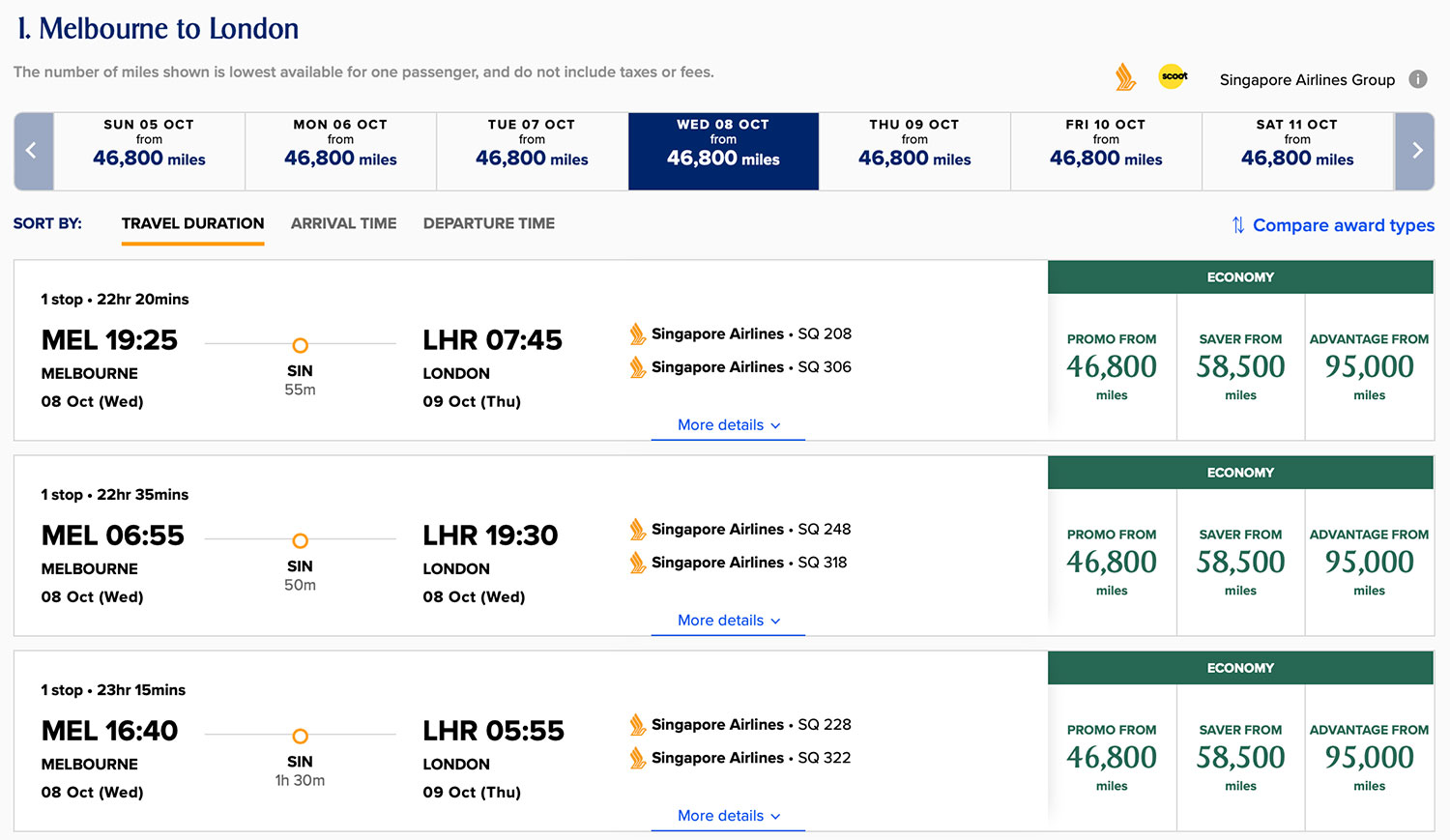 - Eligible Bookings: Economy Class Saver award redemptions booked on the Singapore Airlines website or mobile app.