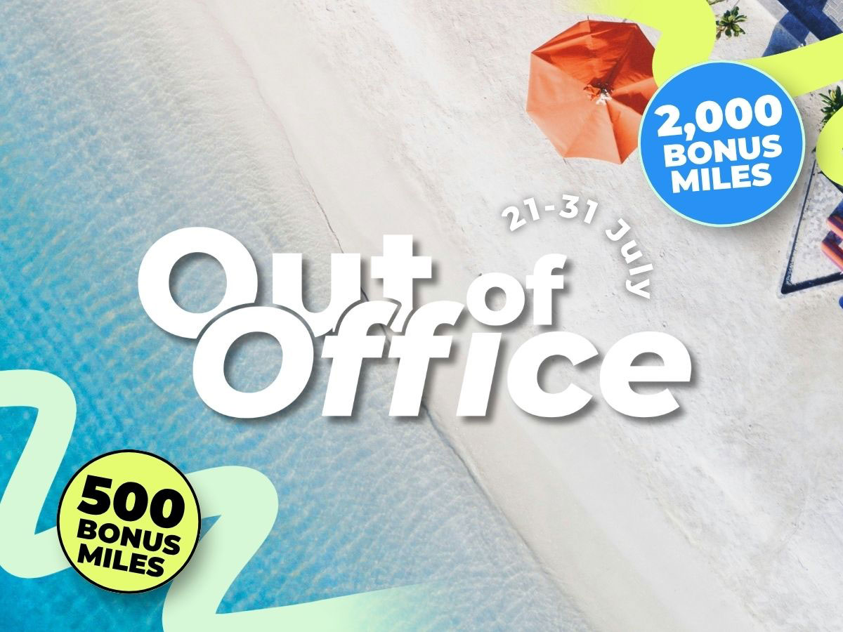 The “Out of Office” promotion runs from 21st July 2025 to 31st July 2025 and provides two tiers of bonus miles earning opportunities, based on your spending threshold: