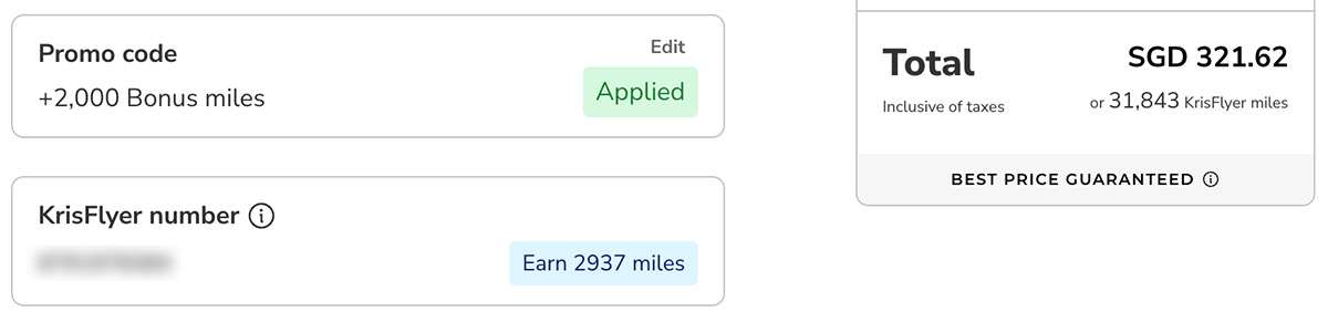 - Ensure your KrisFlyer membership number is entered correctly