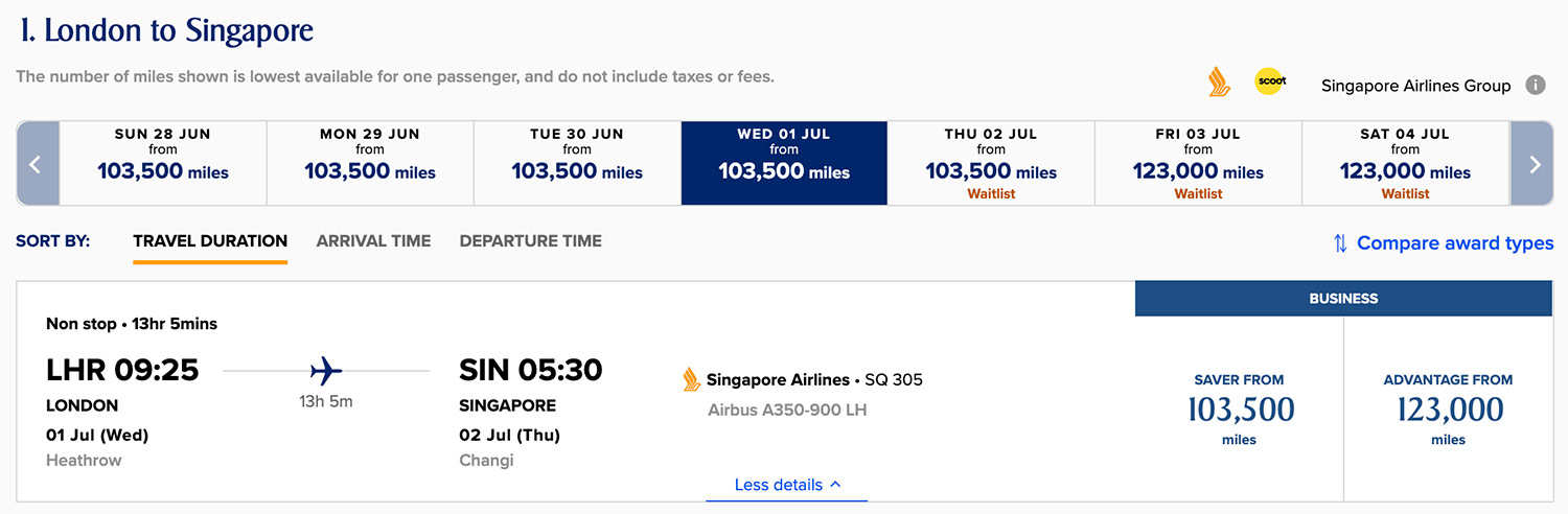In the return direction though, you can secure an award from London to Singapore right from the first day of the type’s operation on the route – 1st July 2026.