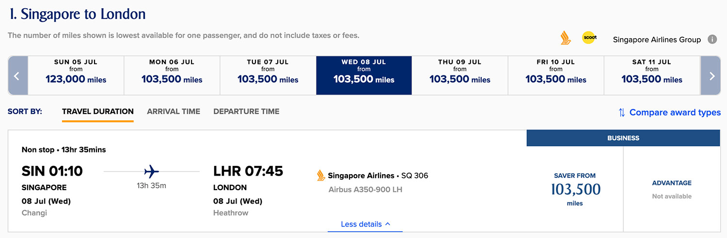 Here’s a reminder of the number of KrisFlyer miles needed for the Singapore – London route.