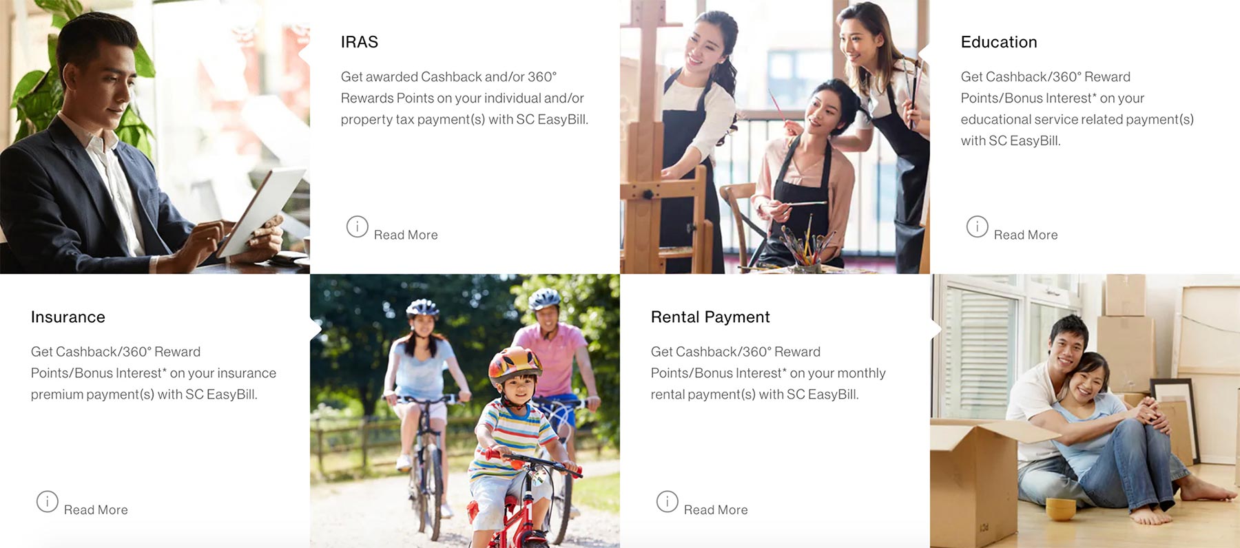 In August 2019 Standard Chartered launched EasyBill, a way for their credit card customers to earn the usual rewards points for outgoings not usually allowing credit card payments, like rental and education expenses.