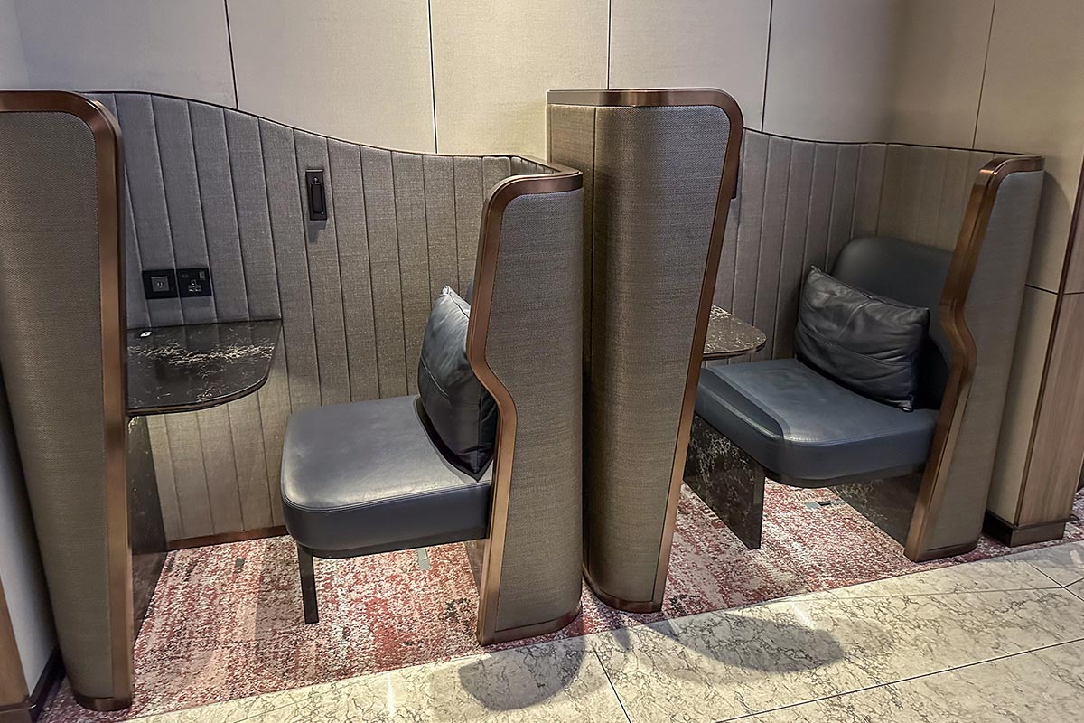 These are not quite the private productivity pods seen in other lounges, but still offer more productive working spaces than the current basic setup.