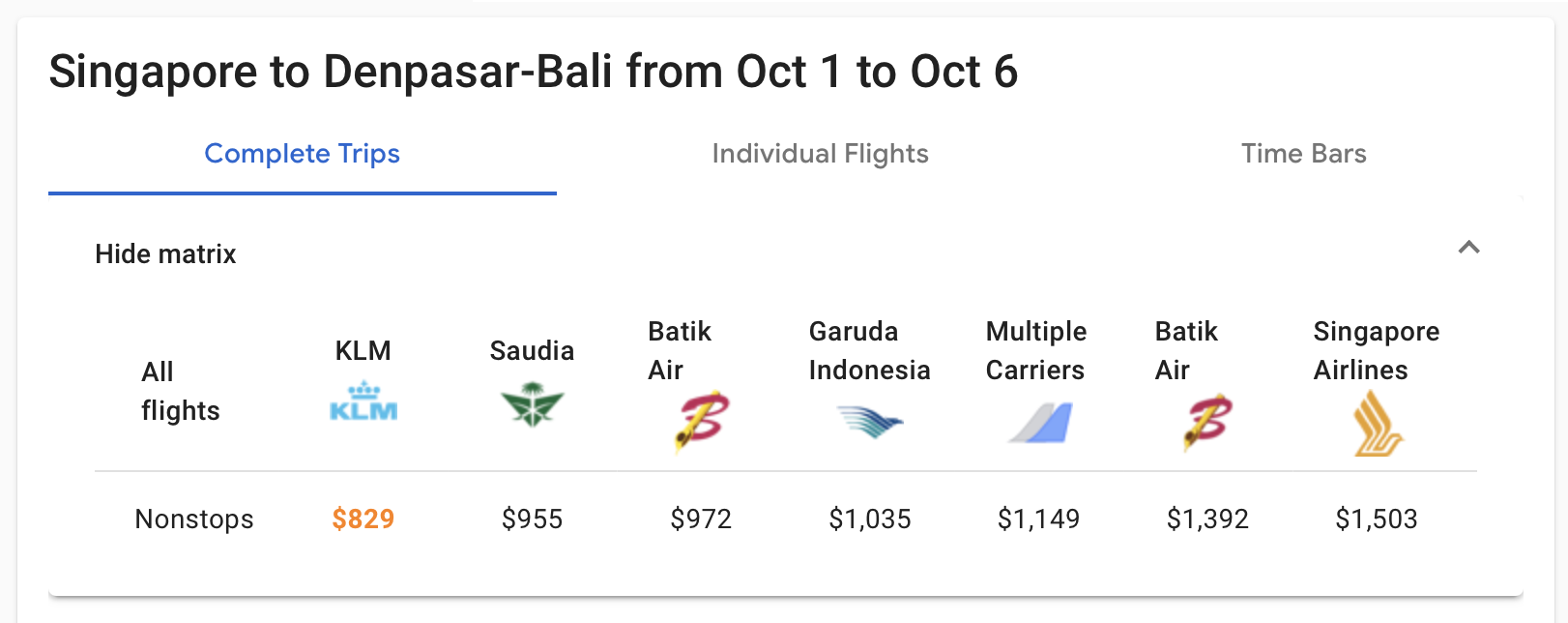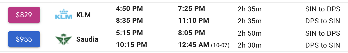Taxes and fees on Saudia are also steep at US$77.90 (~S$100) from Singapore to Bali, compared to US$50.70 (~S$65) for KLM and Singapore Airlines flights.
